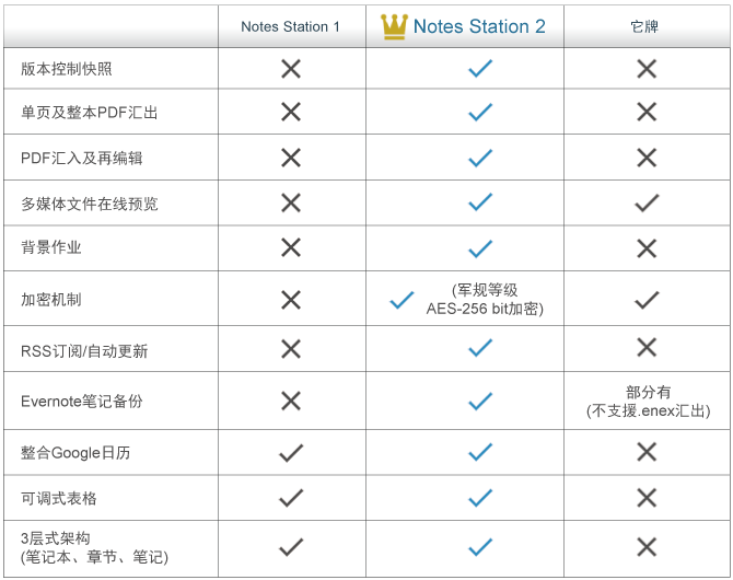Notes Station 是万用私有云数字笔记,用户在搜集信息、编辑笔记的同时,更可以利用 Turbo NAS 中的文件、照片、音乐及视频来丰富笔记内容;使用者也可邀请他人共笔,协同工作更有效率;在每一篇笔记中还能汇整 Google 行事历及待办事项,便利集中阅览及管理。Notes Station 2.0 将笔记变得简单、安全,又易于分享。