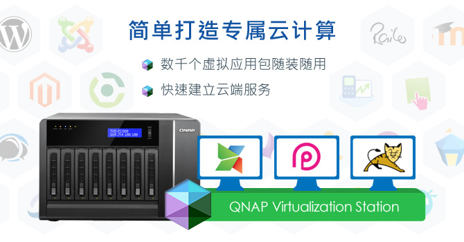自 Virtual Appliance (虚拟机应用包) 的兴起,许多软件厂商直接将运行软件所需的操作系统组件与软件本身整合成虚拟机文件格式,便利使用者直接下载立刻使用,免去安装操作系统的时间。市面上已有许多 Virtual Appliance 的在线市集,例如:VMware Virtual Appliance Marketplace、Bitnami 和 TurnKey 等,使用者只需选择合用的软件服务或应用程序,下载 Virtual Appliance 并直接汇入虚拟化平台 (如 VMware、VirtualBox 等),即可马上使用。当 NAS 内建 Virtualization Station,也能享受 Virtual Appliance 的便利,透过几个简单步骤下载、汇入,启用私有云端服务器十分便利。