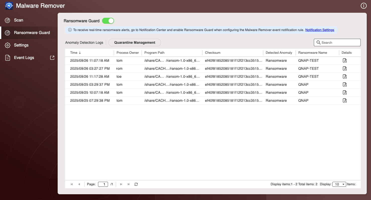 通过 Ransomware Guard 为您的 QNAP NAS 提供防勒索软件保护,为恶意软件清除工具增添防护层。