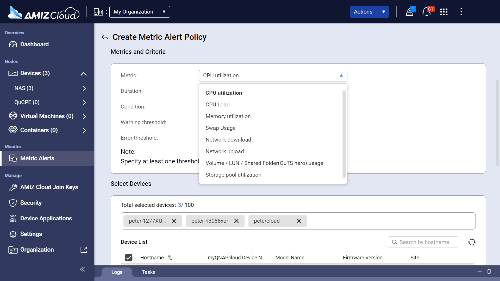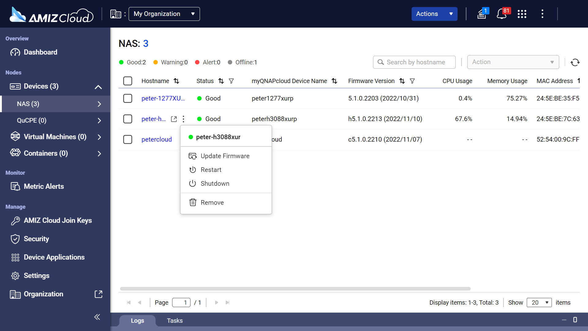 以 AMIZcloud 云端中控系统监控并管理 NAS