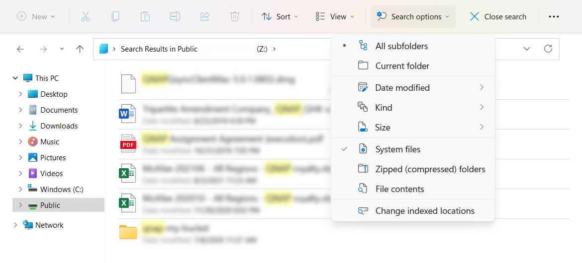 当 NAS 的内容经由 Qsirch 建立索引,可直接在 Windows 执行 QNAP NAS 共享文件夹的全文搜索。