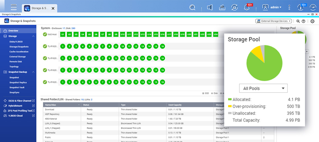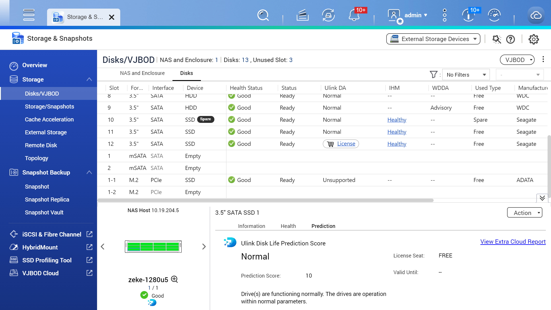 Storage & Snapshots 整合更多信息,让您快速掌握所有硬盘槽位的硬盘种类与信息,并通过 ULINK® DA Drive Analyzer、Seagate® IHM、WD® DA 实时了解硬盘健康状态。