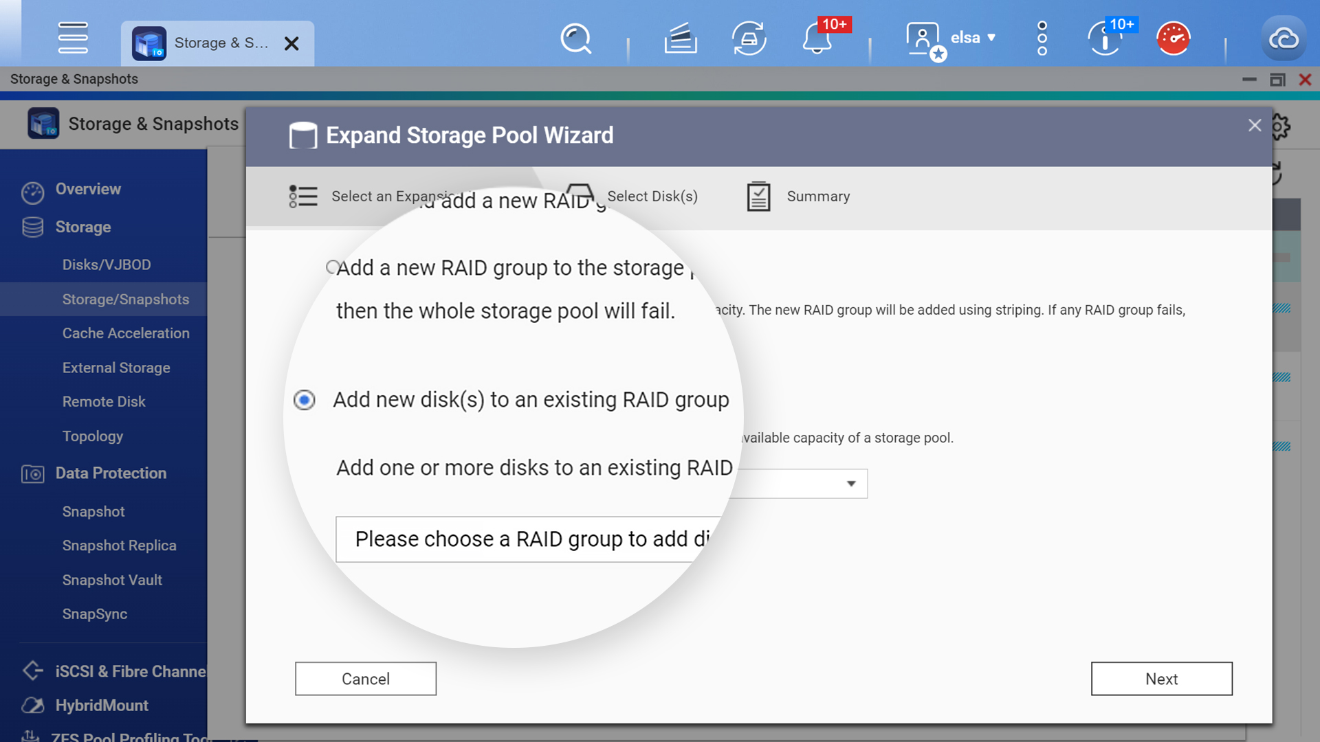 以往要扩充 QuTS hero NAS 存储空间,必须以 RAID 为单位来扩充既有的存储容量。现在,您可以直接加入单块硬盘来扩充 RAID 容量,或加入 2~3 块硬盘来升级 RAID 组态并增加 Parity 功能,容量升级更加地便利。