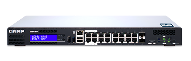 - IP 监控系统:QGD-1600P 可同时提供多支摄影机 15~60 瓦 PoE 电力,并整合 QVR Pro 监控功能,可自动侦测 ONVIF 标准摄影机。内建 HDMI 输出亦可实时播放监控画面。