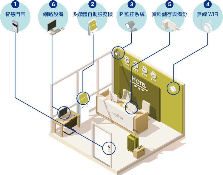 配置一套智能门禁系统,对于房客与房东而言都是一件很便利的事。房客入住时,只要透过多媒体机 check-in 系统,即可完成入住手续,同时也能让房客理解住房信息。您需要提供无线网络及相关网络设备,满足房客数据查询或电话联系的需求。许多房客的数据及各种档案文件也应该妥善保存。IP 监控系统可保障房客安全。