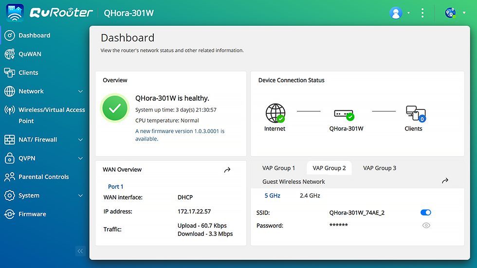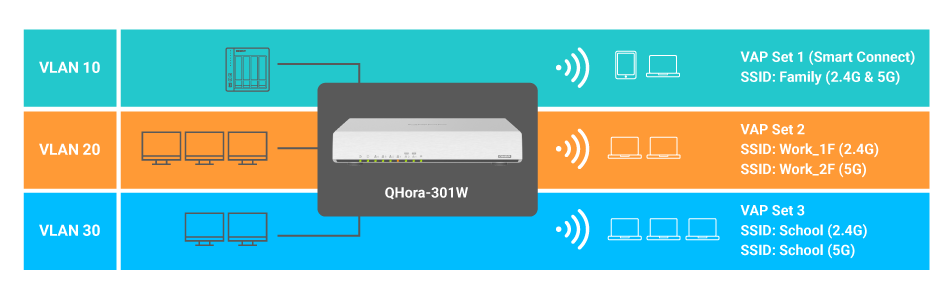 QHora-301W 具备 Wi-Fi 6 dual-band 802.11ax (2.4GHz & 5GHz) 联机,较 Wi-Fi 5 拥有 1.38 倍的无线高速连网体验。