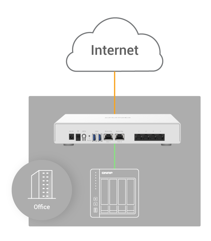 SD-WAN 不再只是大型企业的专利。QHora-301W 内置 QNAP QuWAN 软件定义网络方案,让多点办公室远距网络联机变得更容易。