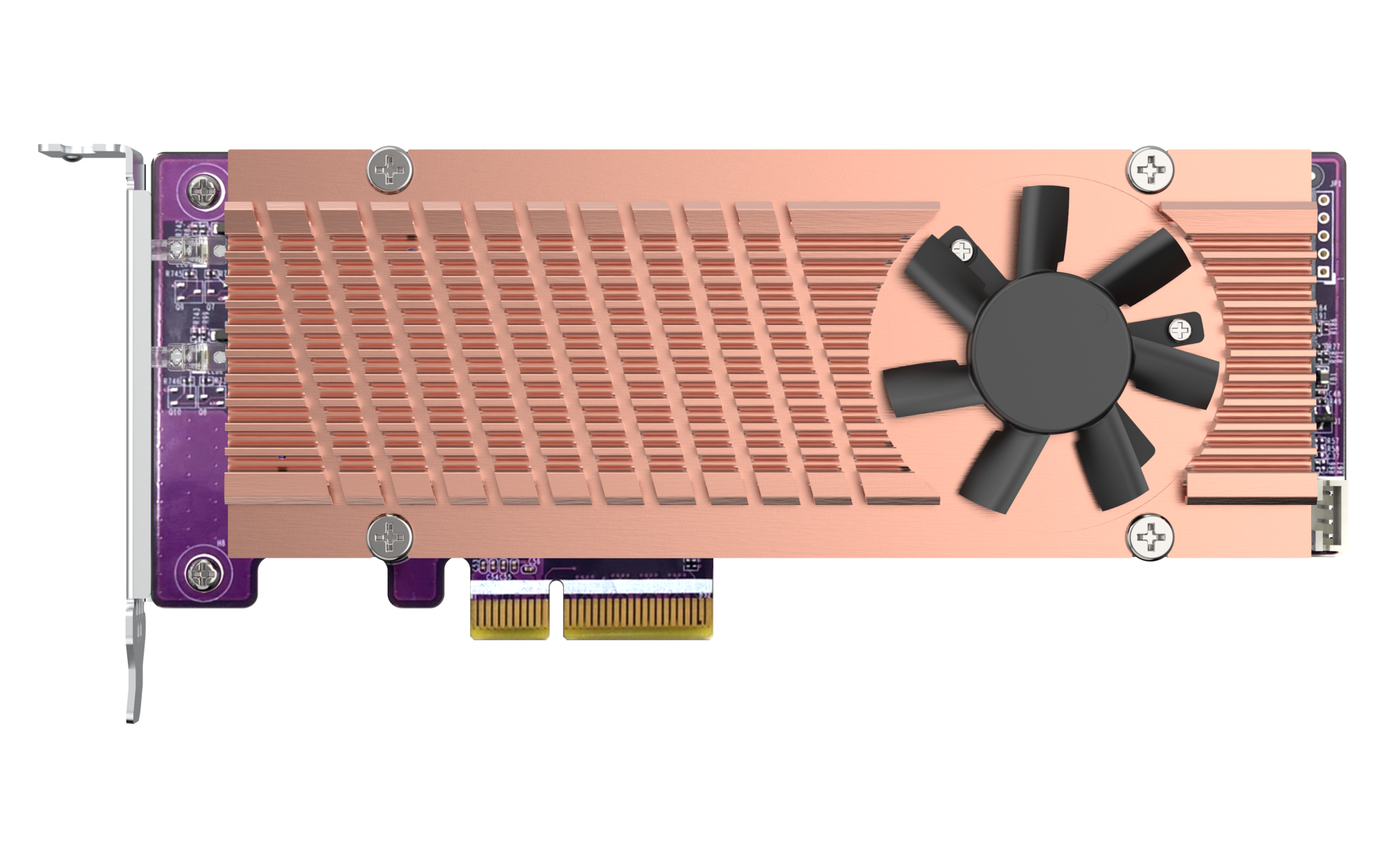 连接器 2 x M.2 22110 或 2280 PCIe (Gen2 x 4) NVMe SSD 插槽 PCIe 与通道数 PCIe Gen2 x4 挡板 低调型(默认),还包括低调型平面和全高支架。 尺寸(长 x 宽 x 高) 170.5 × 20.6 × 68.9 mm 注意 [NAS] 推荐机型(请将您的 NAS 更新到最新版本)