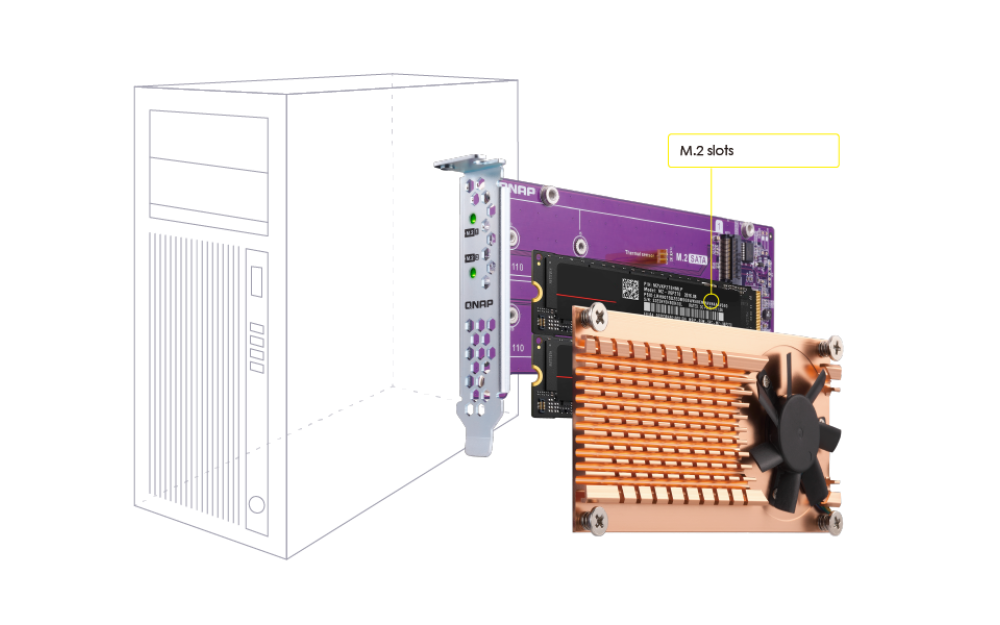 注意:TS-x77 和 TVS-x82(T) 系列仅支持在系统区 PCIe 插槽(PCIe 插槽 1)安装 QM2。