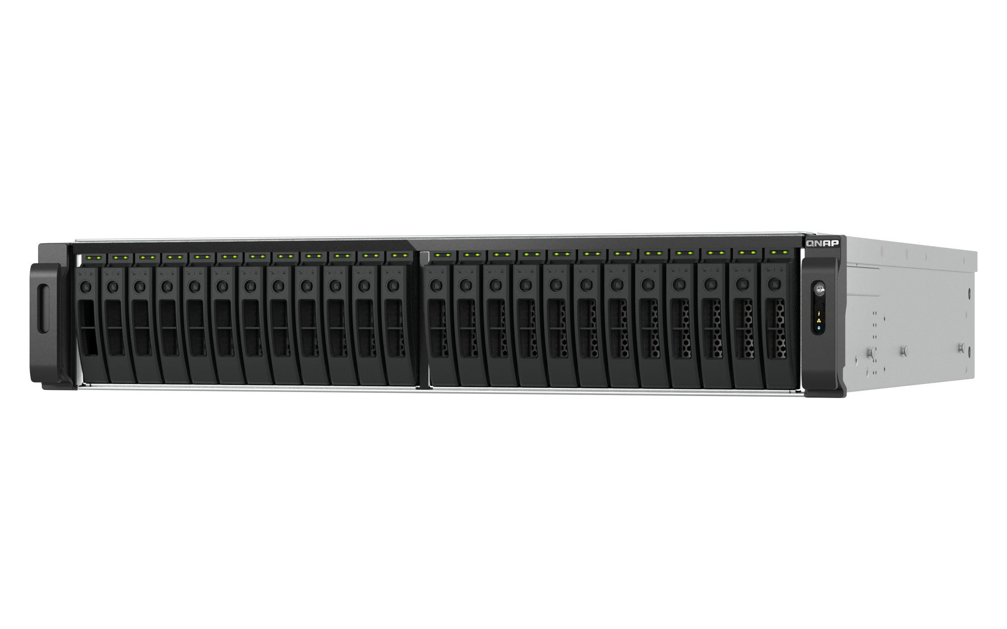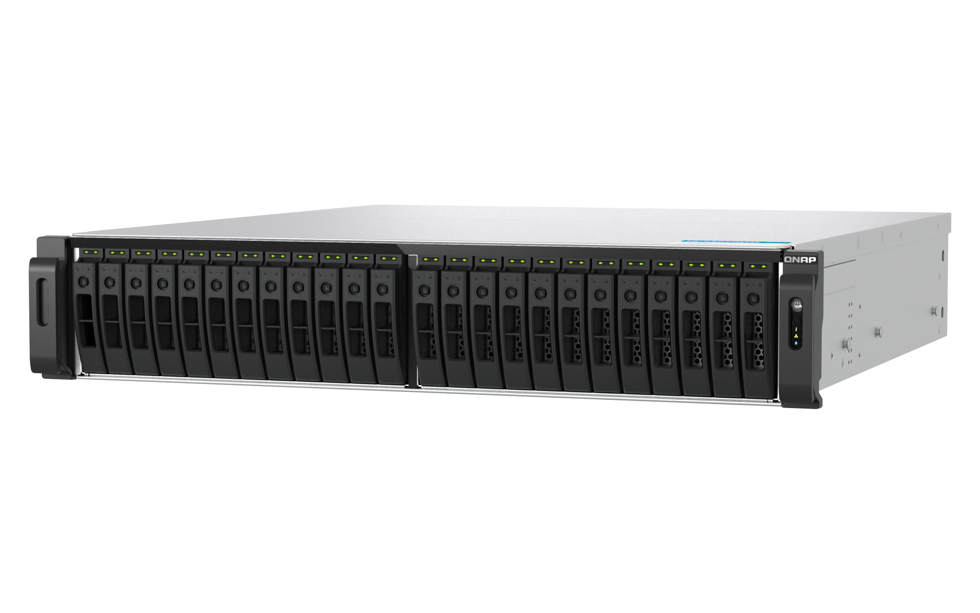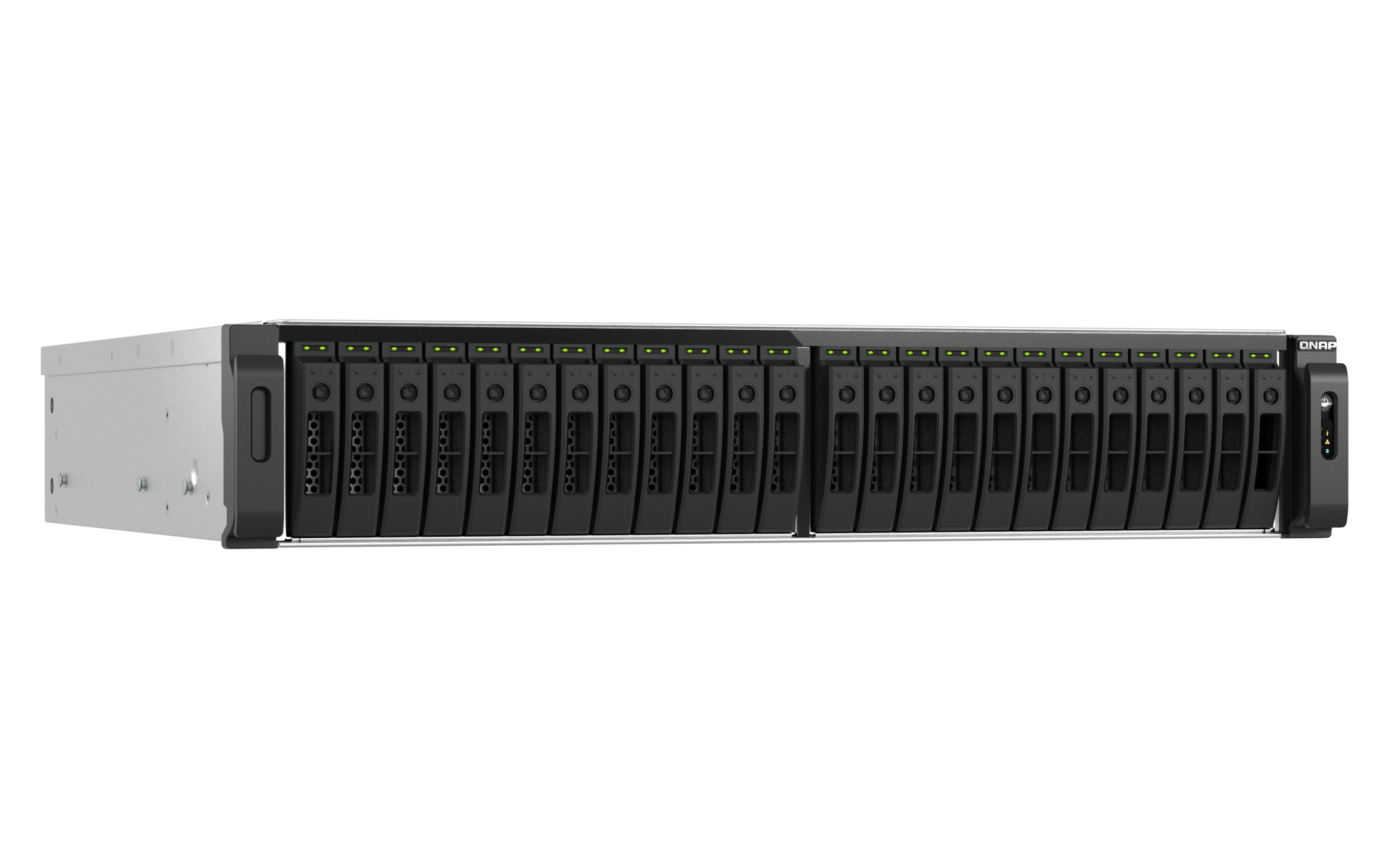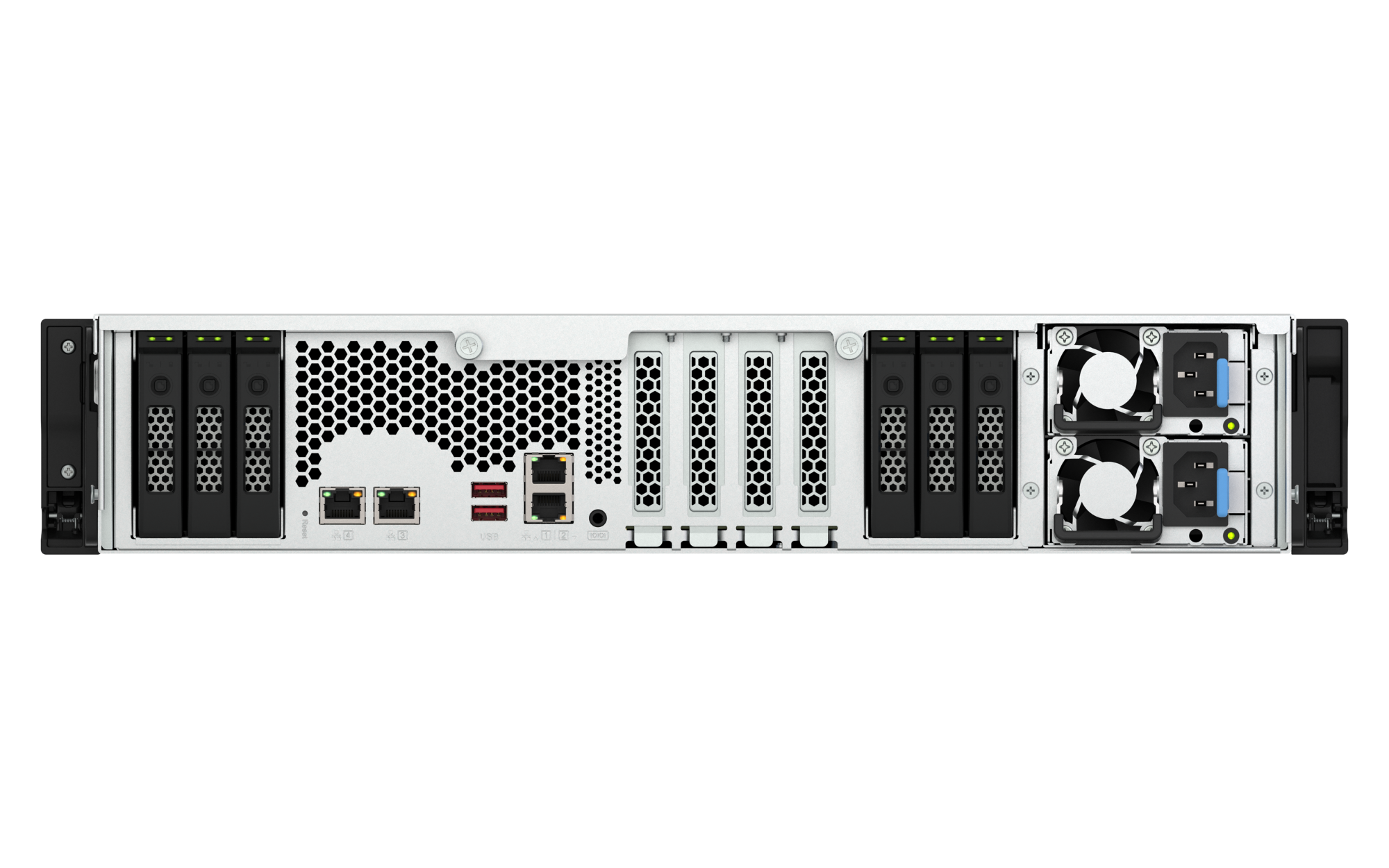 插槽 3: Gen 4 x4USB 3.2 Gen 2 (10Gbps) 端口 2 x Type-A USB 3.2 Gen 2 10Gbps 外形规格 2U 机架式 LED 指示灯 电源状态、SSD 1-30、状态、局域网、存储扩展端口状态 按钮 电源、系统重置 尺寸(高 x 宽 x 深) 88.3 × 442.6 × 485.2 mm 不包括耳钩与电源供应器的突出部分。净重 12.73 kg 毛重 18.69 kg 工作温度 0 - 40°C (32°F - 104°F) 存储温度 -20 - 70 °C (-4°F - 158°F) 相对湿度 5-95% RH (不凝结),湿球:27˚C (80.6˚F) 电源单元 550W(x2),100-240V 功耗:典型工作模式 380.23 W NAS 装满硬盘的状态下所测试。风扇 系统风扇:4 个 60mm,12VDC 系统警告 蜂鸣器 标准保修 5 较大并发连接数(CIFS)- 配备内存上限 5000 注意:请仅使用 QNAP 内存模块来保持系统的性能与稳定性。若 NAS 设备有多个内存模块,请使用规格相同的 QNAP 模块,并参考硬件用户手册安装兼容的 QNAP 内存模块。