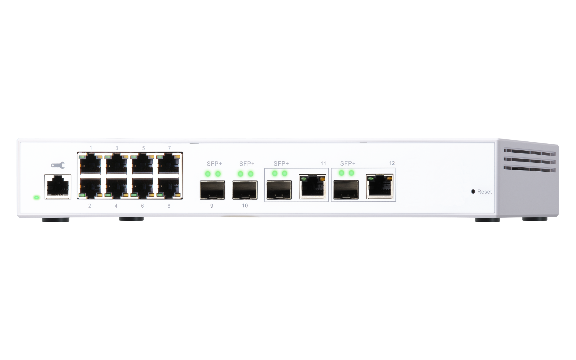 管理类型 网页管理型 端口数量 12 10GbE SFP+ 2 10G/1G10GbE SFP+/RJ45 复合埠 2 注:10GbE SFP+ 埠与 1GbE SFP 回溯相容;RJ45 (铜缆) 复合端口支持速度达五种 (10G/5G/2.5G/1G/100M)。1GbE (RJ45) 8 电源供应器描述 电源转接器 最高耗电量 22.04 W 输入电源类型 AC 输入电压范围 100-240VAC、50/60Hz MAC 地址表 16K 总无壅塞流量 48Gbps 交换容量 96Gbps 管理接口 网页 控制台 RJ45 风扇 PWM 双滚珠轴承风扇 x 1 Sound Level < 21 db(A) 支持标准 IEEE 802.3 以太网