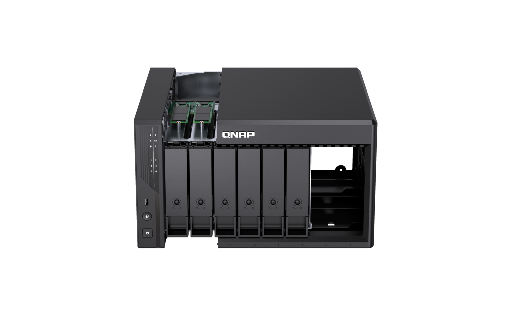 1 个 Type-C USB 3.2 Gen 2HDMI™ 输出 1, HDMI™ 2.1 (up to 4096 x 2160 @ 60Hz) 外型 直立式 LED 指示灯 系统状态、LAN、USB、HDD1~6、M.2 1~2 按钮 电源、USB 复制、系统重置 尺寸 (高 x 宽 x 深) 165 × 226 × 217 mm 重量 (净重) 2.52 kg 重量 (总重) 4.82 kg 操作温度 0 - 40°C (32°F - 104°F) 存储温度 -20 - 70 °C (-4°F - 158°F) 相对湿度 5-95% RH (不凝结),湿球:27˚C (80.6˚F) 电源供应器 120W 适配器 耗电量:运作模式,一般 84.42 W 使用已完全安装的 ST8000NM000A 进行测试。系统警示 蜂鸣器 Kensington 安全插槽 同时联机 (CIFS) 数目上限-内存上限 1500 注意:请仅使用 QNAP 内存模块来保持系统的性能与稳定性。若 NAS 设备有多个内存模块,请使用规格相同的 QNAP 模块,并参考硬件用户手册安装兼容的 QNAP 内存模块。