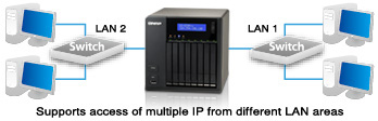 SS-839 Pro 可以设定两个不同的 IP,并同时服务在两个不同子网段的工作组。
