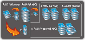 RAID容量扩充让用户可在保留所有数据、不停机的情况下,一步一步地顺利的进行RAID容量扩充。