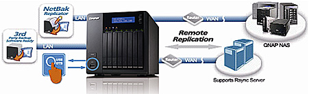 Turbo NAS 支持Amazon S3 及ElephantDrive 在线备份及存储服务。您可以设定排程备份、实时备份与轻松地透过网络存取您的档案数据。 - QNAP 备份软件 - NetBak Replicator
