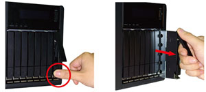您可以使用方便的LCD屏幕作RAID组态的快速安装,只需要三个步骤,系统会自动格式化硬盘以及建立RAID组态。