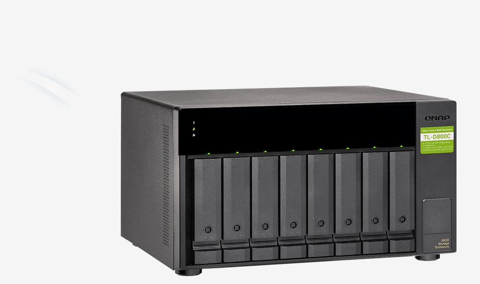 桌上型 TL-D800C JBOD 存储扩充设备为您提供备份或扩充 Windows®、Linux® 计算机与服务器的新选择。TL-D800C 拥有 8 个 SATA 6Gb/s 硬盘插槽,支持 3.5 英寸/2.5 英寸 SATA硬盘或 SSD,大容量适合内容创作者存储大量素材,快速扩充 PC 容量!USB 3.2 Gen2 Type-C 接口的 10Gbps 高速传输速度能让您的存储与备份更加流畅快速,USB 为目前巿场上使用率较高的传输接口,通用性搭配免工具即插即用的特性,让您拥有简单又弹性的容量扩充体验。
