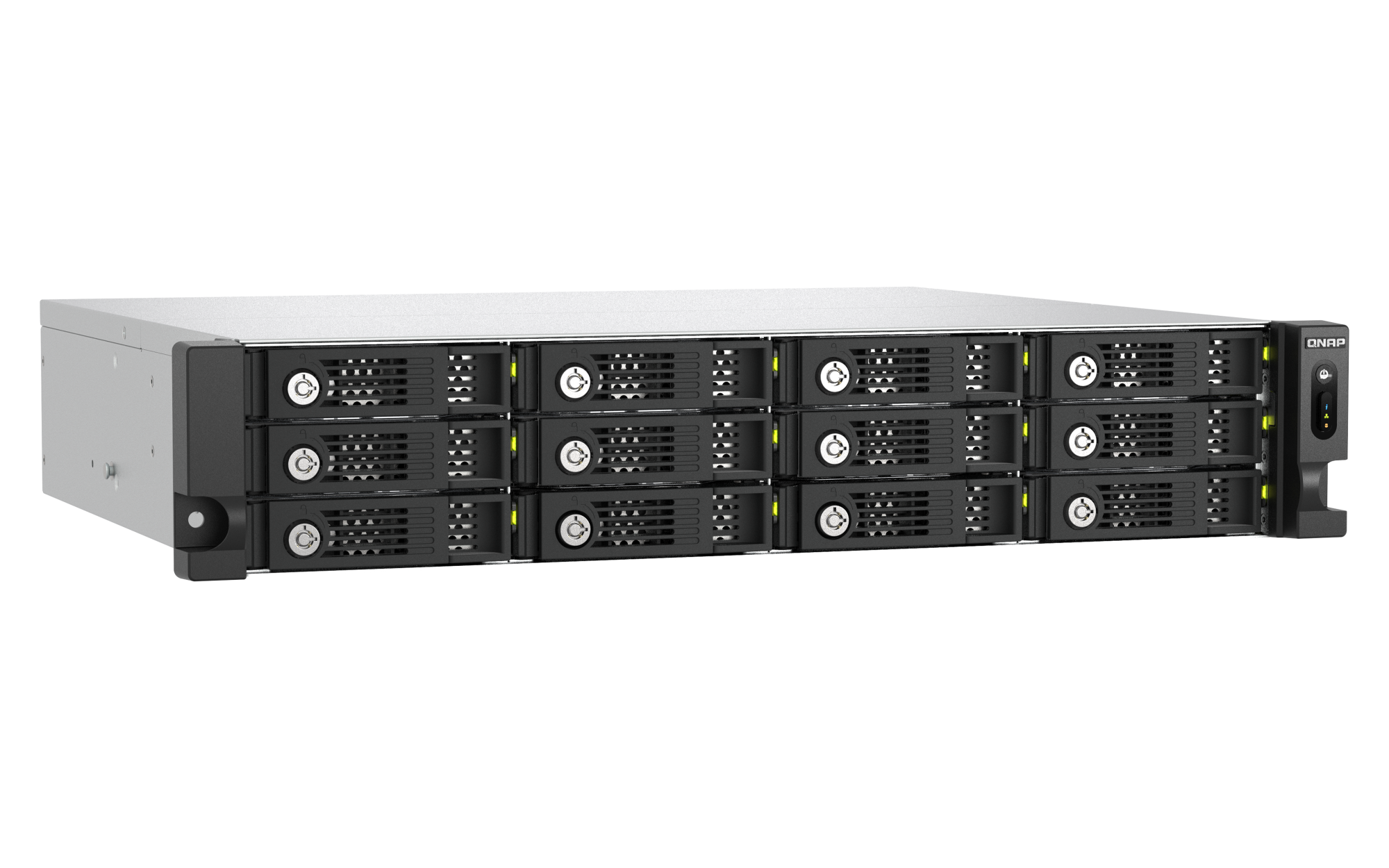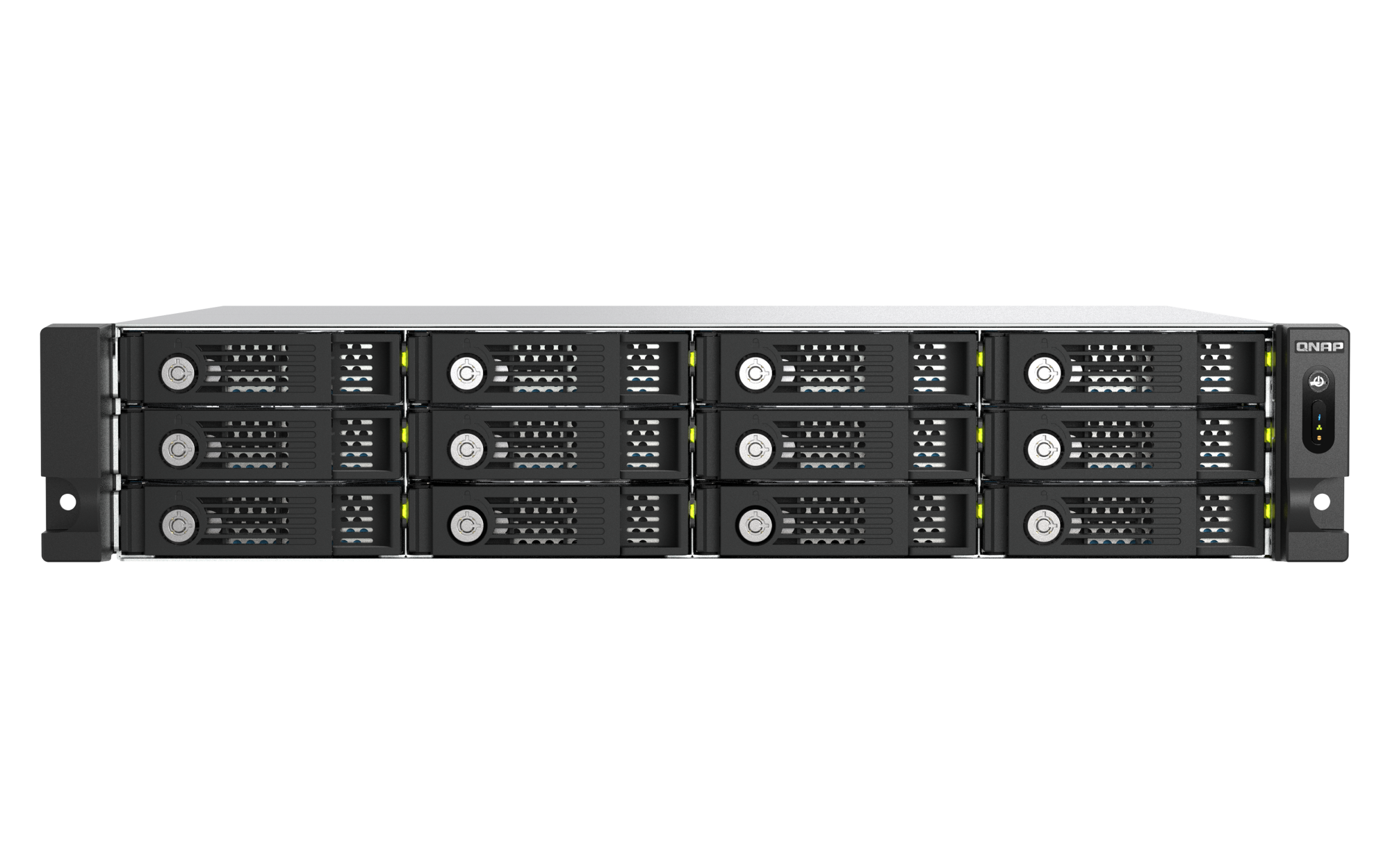 2.5英寸 SATA 6Gb/s, 3Gb/s固态硬盘您只能在一个RAID组中使用一种磁盘类型(HDD或SSD)。不支持在一个RAID组中混合使用不同类型的磁盘。热插入支持 外型 2U 机架式 主机接口 1 个 USB 4 (40Gbps) Type-C LED 指示灯 HDD 1-12、状态、链接、风扇错误 按钮 电源开关 尺寸 (高 x 宽 x 深) 88.65 × 432 × 370.85 mm 不包括耳挂和电源单元的凸出部分。重量 (净重) 9.17 kg 操作温度 0 - 40°C (32°F - 104°F) 存储温度 -20 - 70°C (-4°F - 158°F) 相对湿度 5~95% RH 无凝结,湿球温度:27°C (80.6°F) 电源供应器 250W(x2)PSU,100 - 240V 风扇模式开关 (自动,高,中,低) 风扇 2 x 80mm, 12VDC 系统警示 蜂鸣器 QTS / QuTS hero Windows Ubuntu 标准保固 3 注意:请仅使用 QNAP 内存模块来保持系统的性能与稳定性。若 NAS 设备有多个内存模块,请使用规格相同的 QNAP 模块,并参考硬件用户手册安装兼容的 QNAP 内存模块。