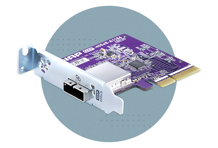使用 TL-R400S 存储扩充设备,您需搭配专属的 QXP 扩充卡。将其安装于 QNAP NAS、Windows® 或 Ubuntu® 计算机及服务器的 PCIe 扩展槽,再透过 SFF-8088 (或SFF-8644) 传输线与 TL-R400S 串接,弹性扩充存储容量,即插即用,简易又弹性。