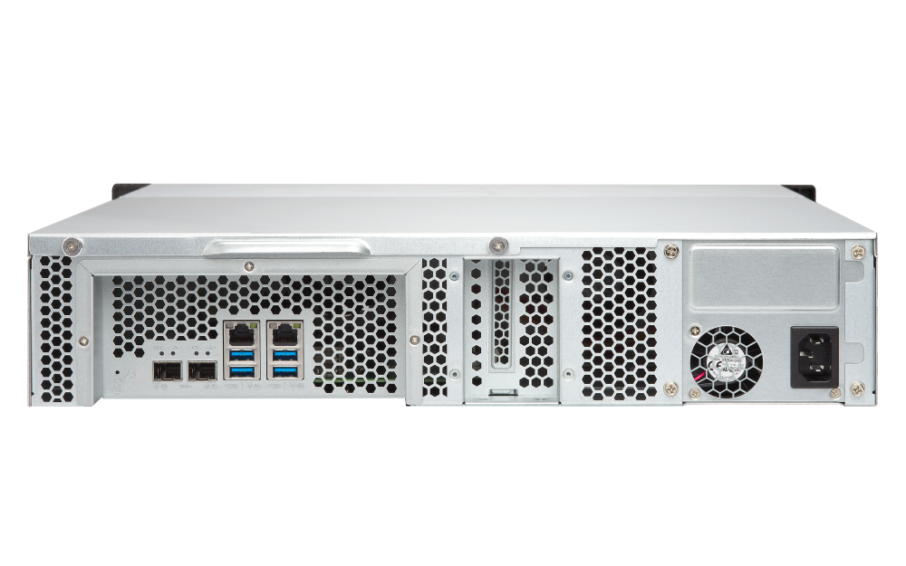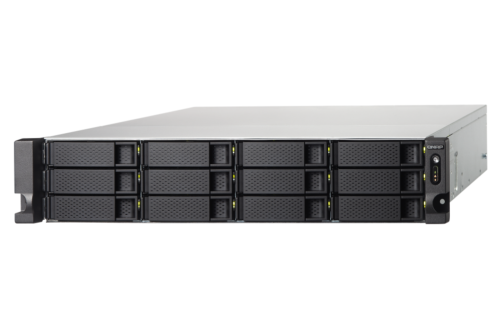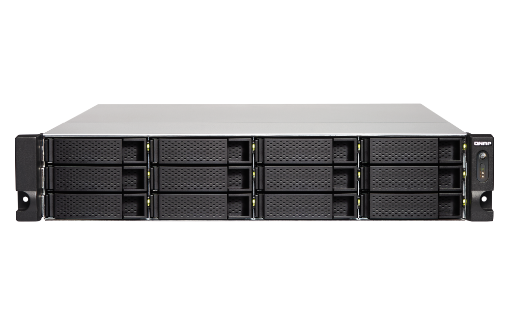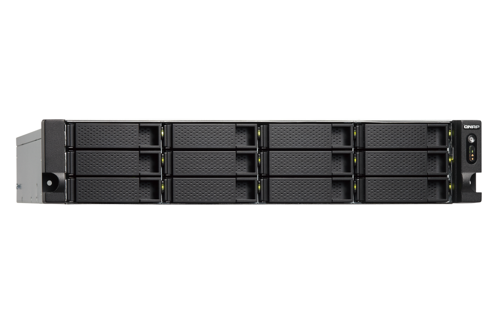 插槽 1:PCIe Gen 2 x2PCIe 带宽限制将限制 NAS 10GbE 的性能。USB 3.2 Gen 1 端口 4 外型 2U 机架式 LED 指示灯 HDD 1-12、状态、网络、存储扩充 按钮 电源、系统重置 尺寸 (高 x 宽 x 深) 89 × 482 × 534 mm 重量 (净重) 9.83 kg 重量 (总重) 15.57 kg 操作温度 0 - 40°C (32°F - 104°F) 存储温度 -20 - 70 °C (-4°F - 158°F) 相对湿度 5-95% RH (不凝结),湿球:27˚C (80.6˚F) 电源供应器 250W PSU,100 - 240V Power Consumption: Disk Standby Mode 30.63 W 耗电量:运作模式,一般 67.56 W NAS 装满硬盘的状态下所测试。风扇 2 x 70mm,12VDC 系统警示 蜂鸣器 标准保固 3 同时联机 (CIFS) 数目上限-内存上限 700 注意:请仅使用 QNAP 内存模块来保持系统的性能与稳定性。若 NAS 设备有多个内存模块,请使用规格相同的 QNAP 模块,并参考硬件用户手册安装兼容的 QNAP 内存模块。