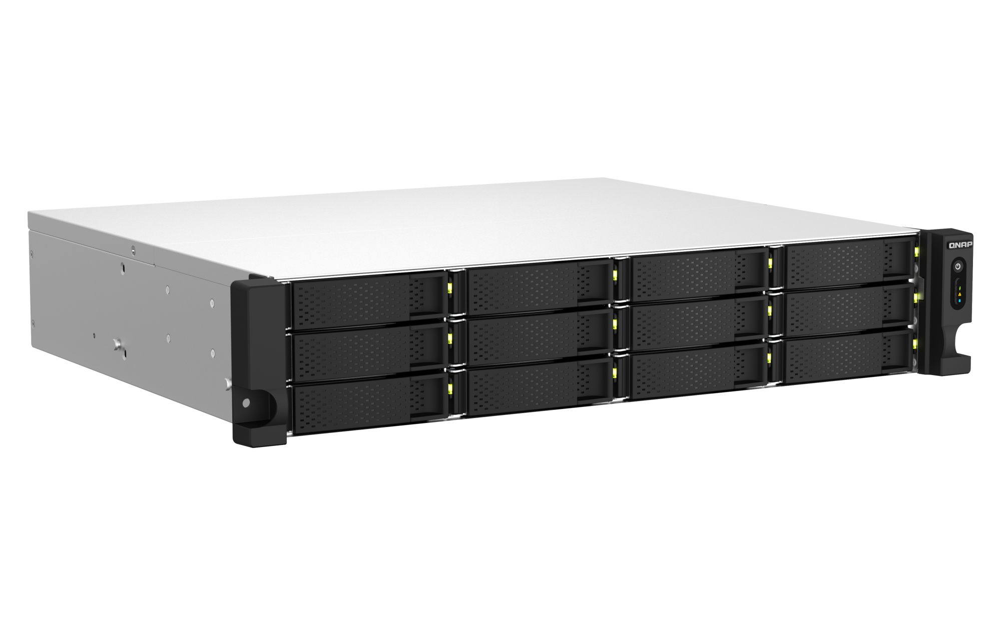 插槽 1:PCIe Gen 3 x2PCIe插槽的卡尺寸:160 x 68.9 x 28.76 mm / 6.3 x 2.71 x 1.13英寸。USB 2.0 端口 2 USB 3.2 Gen 2 (10Gbps) 端口 2 x Type-A USB 3.2 Gen2 10Gbps HDMI™ 输出 1, HDMI™ 1.4b 外形规格 2U 机架式 LED 指示灯 HDD 1-12、状态、局域网、扩展、电源 按钮 电源、系统重置 尺寸(高 x 宽 x 深) 88.6 × 432 × 370.7 mm 净重 10.64 kg 毛重 14.01 kg 工作温度 0 - 40°C (32°F - 104°F) 存储温度 -20 - 70 °C (-4°F - 158°F) 相对湿度 5-95% RH (不凝结),湿球:27˚C (80.6˚F) 电源单元 300W (x2), 100 - 240V 功耗:磁盘待机模式 37.854 W 功耗:典型工作模式 70.913 W NAS 装满硬盘的状态下所测试。风扇 2 x 80mm,12VDC 系统警告 蜂鸣器 标准保修 3 较大并发连接数(CIFS)- 配备内存上限 1500 注意:请仅使用 QNAP 内存模块来保持系统的性能与稳定性。若 NAS 设备有多个内存模块,请使用规格相同的 QNAP 模块,并参考硬件用户手册安装兼容的 QNAP 内存模块。