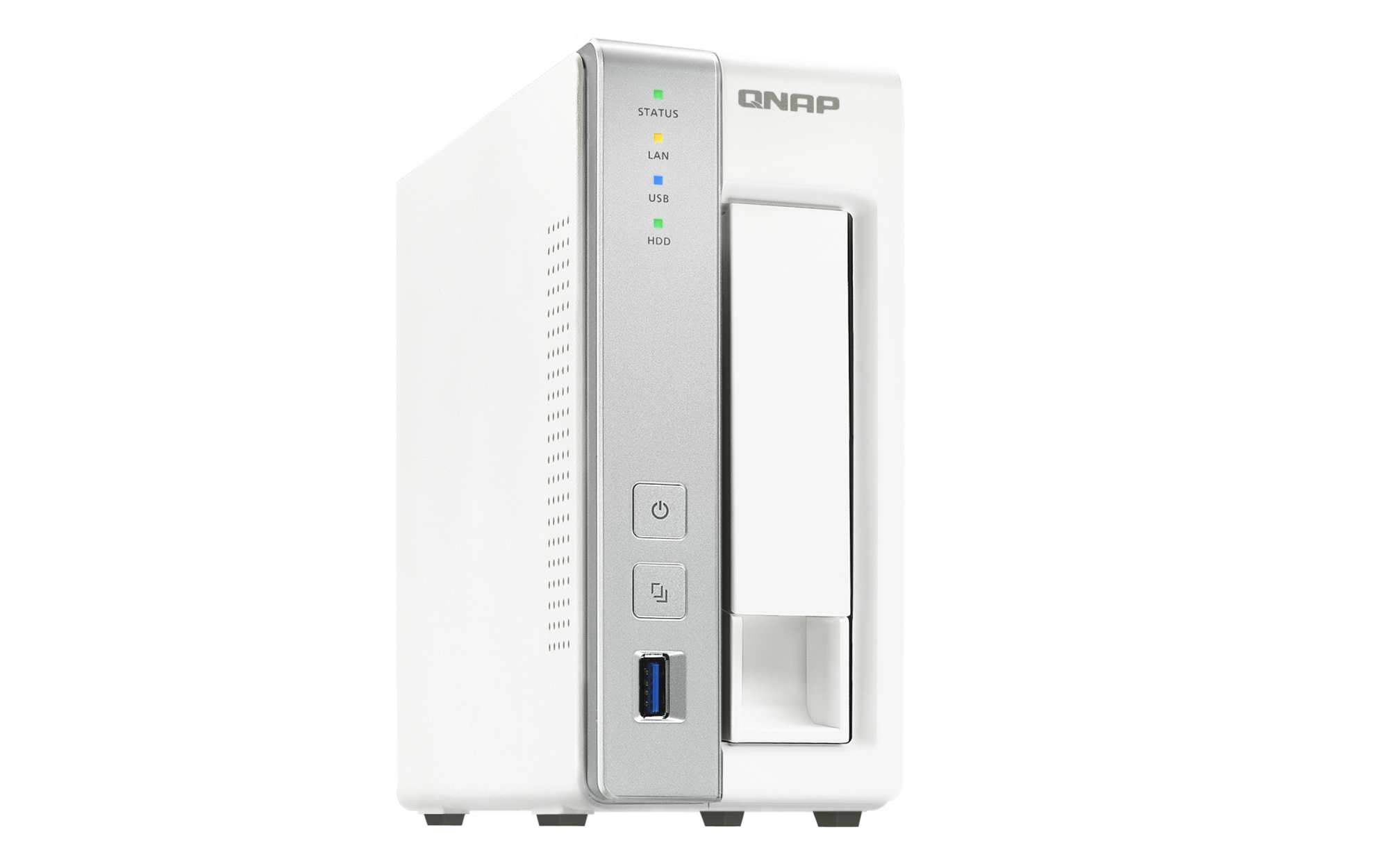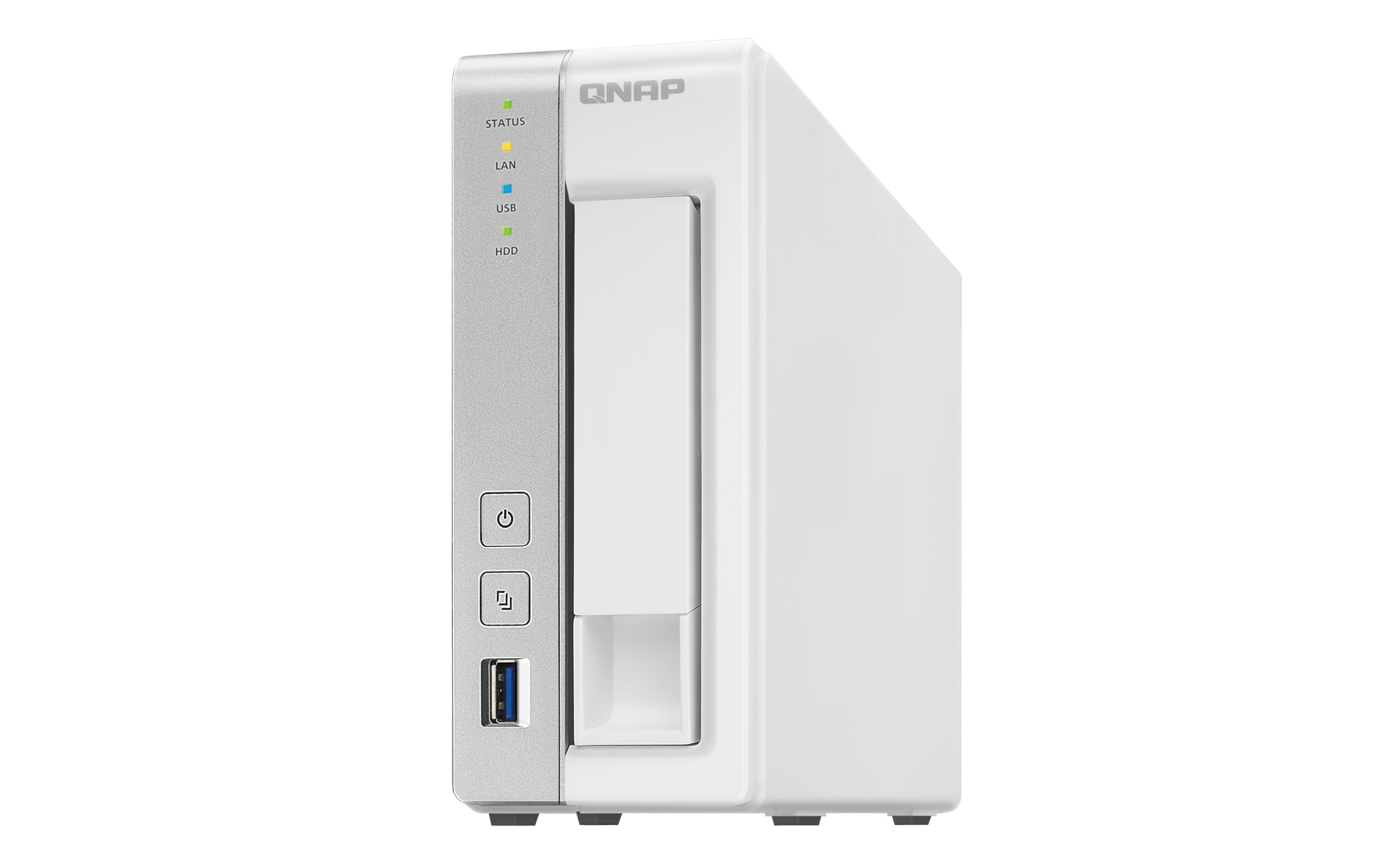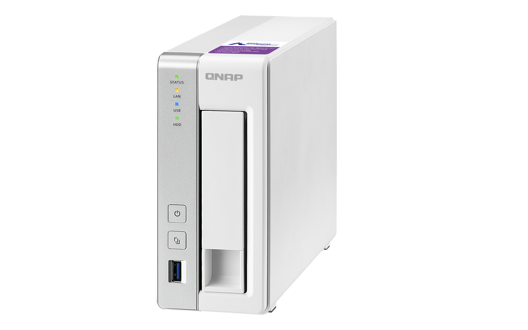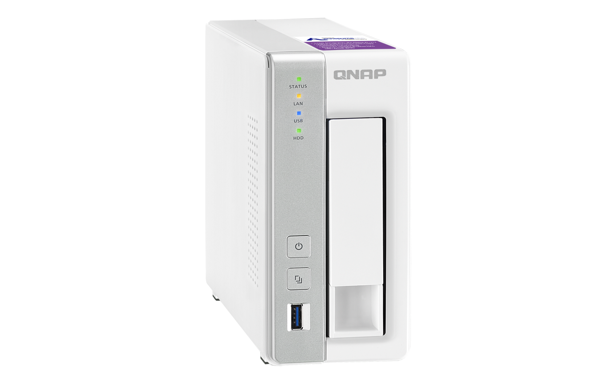 2.5英寸 SATA 固态硬盘热插拔 SSD 缓存加速支持 以太网端口(RJ45) 1 网络唤醒(WOL) 巨帧 USB 3.2 Gen 1 端口 3 外形规格 直立式 LED 指示灯 电源,状态,局域网,USB,HDD1 按钮 电源,系统重置,USB自动复制 尺寸(高 x 宽 x 深) 169 × 73 × 219 mm 净重 1.16 kg 毛重 1.99 kg 工作温度 0 - 40°C (32°F - 104°F) 存储温度 -20 - 70 °C (-4°F - 158°F) 相对湿度 5-95% RH (不凝结),湿球:27˚C (80.6˚F) 电源单元 36W 适配器,100-240V 功耗:磁盘待机模式 7.29 W 功耗:典型工作模式 11.62 W NAS 装满硬盘的状态下所测试。风扇 1 x 50mm,12V直流 系统警告 蜂鸣器 Kensington 安全性插槽 标准保修 2 较大并发连接数(CIFS)- 配备内存上限 400 注意:请仅使用 QNAP 内存模块来保持系统的性能与稳定性。若 NAS 设备有多个内存模块,请使用规格相同的 QNAP 模块,并参考硬件用户手册安装兼容的 QNAP 内存模块。