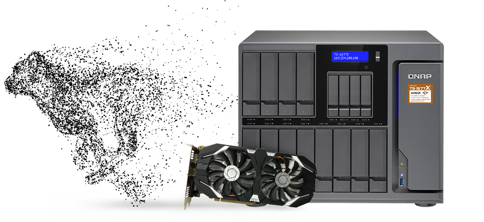 大容量 TS-1677X 搭载强悍 AMD Ryzen™ 处理器,拥有高达 8 核心与 16 线程的性能优势,结合扩充图形显卡强力提升运算性能,一跃成为强大的数据运算智能中心,为您发展 AI 机器学习 (Machine Learning) 应用提供最有力的后盾!Turbo Core 可达 3.7 GHz 的高频率、高运算力可大幅强化 NAS 内建虚拟机性能,流畅体验,锐不可挡!