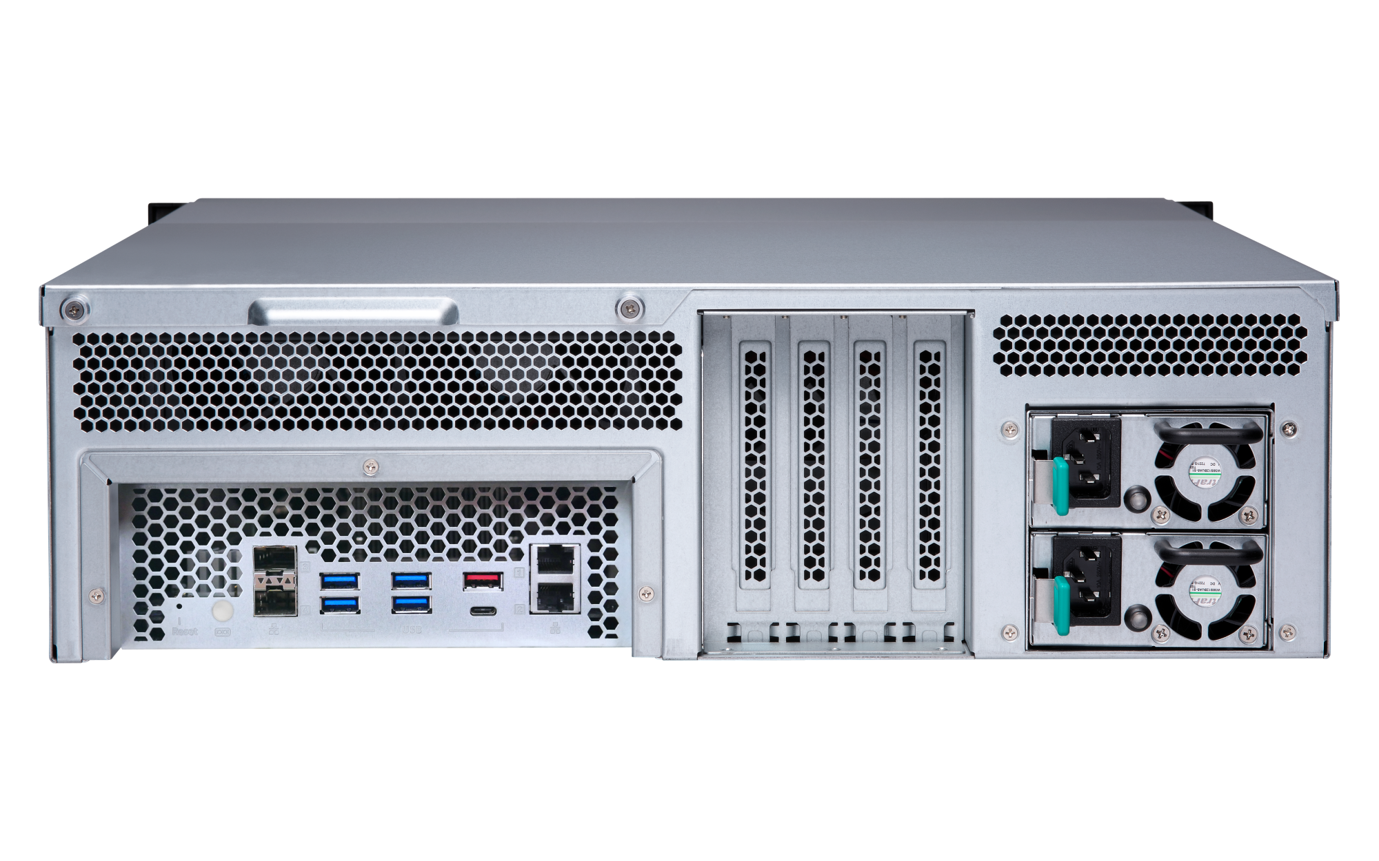 1 x Type-A USB 3.2 Gen 2 10Gbps外形规格 3U 机架式 LED 指示灯 HDD 1-16、状态、局域网、存储扩展端口状态 按钮 电源、系统重置 尺寸(高 x 宽 x 深) 130 × 481 × 573.5 mm 不包括耳钩与电源供应器的突出部分。净重 15.26 kg 毛重 21.38 kg 工作温度 0 - 40°C (32°F - 104°F) 存储温度 -20 - 70 °C (-4°F - 158°F) 相对湿度 5-95% RH (不凝结),湿球:27˚C (80.6˚F) 电源单元 500W(x2),100-240V 功耗:典型工作模式 136.45 W NAS 装满硬盘的状态下所测试。风扇 系统风扇:4 x 92mm,12VDC 系统警告 蜂鸣器 较大并发连接数(CIFS)- 配备内存上限 5000 注意:请仅使用 QNAP 内存模块来保持系统的性能与稳定性。若 NAS 设备有多个内存模块,请使用规格相同的 QNAP 模块,并参考硬件用户手册安装兼容的 QNAP 内存模块。