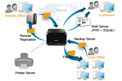 QNAP TS-201是一台全功能的2颗硬盘、RAID 1、热抽换的网络磁碟机,是符合SOHO族及中小企业理想目标的跨平台(Windows和Mac计算机)网络存储需求,而且不需要专业的MIS人员即可自行管理和维护。 TS-201也是一台全功能服务器,有容易使用和超值的软件功能,像是档案服务器、备份服务器、FTP服务器、网站服务器和异地备援…等功能。这些都是为了提供优秀特点的数据保护及使用所设计。TS-201不需要花费额外的时间去安装其它复杂的软件,您可以不需要IT专业人员的协助,即可自行建立您的服务器。 Powerful All-in-one NAS Server (9-in-1 Server!!!)  | 档案服务器 档案服务器的最基本目的就是允许使用者存储以及分享档案。使用者最关切的莫过于私密数据或是机密档案被其它人读取使用。威连通的服务器让服务器管理者可以建立使用者的账号,并且针对每一个使者定义使用者权限以及使用空间的容量,藉此保障服务器上的数据安全性。 |  | FTP服务器 因为email 寄信的容量限制而无法寄送大档案?您可以运用TS-201建立自己专属的FTP服务器,只要几个步骤的设定,就可以轻松地分享你的档案给朋友或是客户。 |  | 备份服务器 对大部分的使用者来说,数据备份既耗时又费功夫。威连通的Turbo Station提供了企业等级的技术,使您的备份工作变得简单又有效率。聪明的自动备份软件 NetBak Replicator,提供了使用者执行实时同步的档案备份模式,或是从多台家用计算机备份至威连通服务器的强大功能。 |  | 异地备援 异地备援提供了更多的数据备份功能。事实上,威连通的异地备援是目前业界资料损失灾难回复最经济的方法。档案资料可以从TS-201,以加密或非加密的方式备份到远程其它的威连通NAS产品。同时,也有进阶的功能像是数据压缩、数据的同步等,将使您省下大量的频宽与时间来做数据的备份。 |  | 网页服务器 拥有一个专属的网络磁碟机不再是梦想! TS-201拥有SQLite的支持,中小企业及SOHO族的使用者能够轻松地架设网页服务器。同时,php.ini 可编辑的支持,将让使用者在设定时可以省掉传统安装Windows based 服务器的安装麻烦。此外,您也可以自行开发或是安装下载open-source的应用,像是架设购物网站,论坛,部落格等。 |  | 打印机服务器 您可以将USB打印机连接到TS-201的USB Port上,透过网络分享网络打印机的功能。 |  | 内建TwonkyMedia的UPnP媒体服务器 TS-201 可当成是一个的多媒体存储中心。它可以与UPnP/ DLNA的媒体播放器兼容。透过TS-201与媒体播放器的相结合,您可以不需透过计算机,直接在电视上播放数字的相片或是影片。此外,您也可以透过同样的方式,收听您最喜爱的音乐及网络广播。 |  | 相片分享 现在您可以透过TS-201和家人及在世界各地的朋友分享您的相片数据。藉由TS-201 上传相片,将会自动地产生相本,缩图及相关的数据,例如日期、分辨率、焦距、孔径等等。您可以用最简便的方式浏览及分享您的数字相片。 |  | 下载中心 TS-201 可以被视为是一个让您不需要开计算机、不间断的下载机器。TS-201 的下载中心,不仅能够做BT档案的下载,也可以透过FTP及HTTP下载数据。使用者可以不用再担心做BT, FTP或是FTTP等大量下载时,会影响到正常计算机的运作。因为,TS-201可以专业地完成下载的工作。使用者可以直接透过网页浏览器做下载,或是可以安装QNAP的QGet 软件做下载。 只要透过网络连结,QGet可以让您随时随地管理您的下载任务;同时,透过QGet,您也可以同时做多台NAS的下载管理。 |  | iTunes 服务器 乐迷及Apple产品的喜好者将会大大地被TS-201音乐分享的功能所吸引。您可以将您所有的mp3音乐档案存储在TS-201及串流到Mac 或是Windows PC播放。只要打开iTunes软件,便可以透过连结听到您存储在TS-201的音乐。 | 支持Windows及Mac跨平台的档案分享。 TS-201专门设计跨平台的支持,提供不同作业环境的使用者能够轻松地分享档案数据。 安全地存取及分享数据 - TS-201的数据将被安全地保护存储: