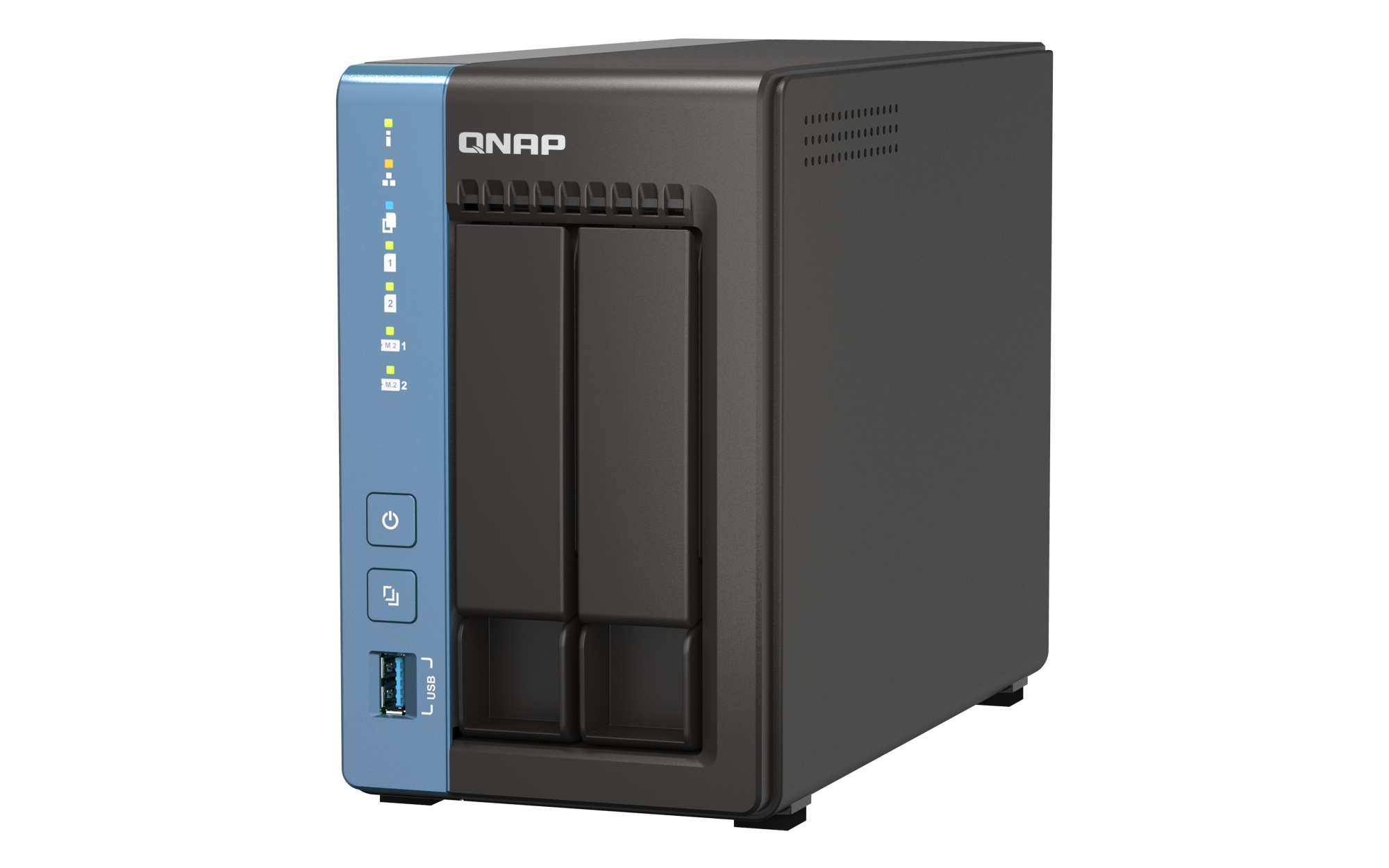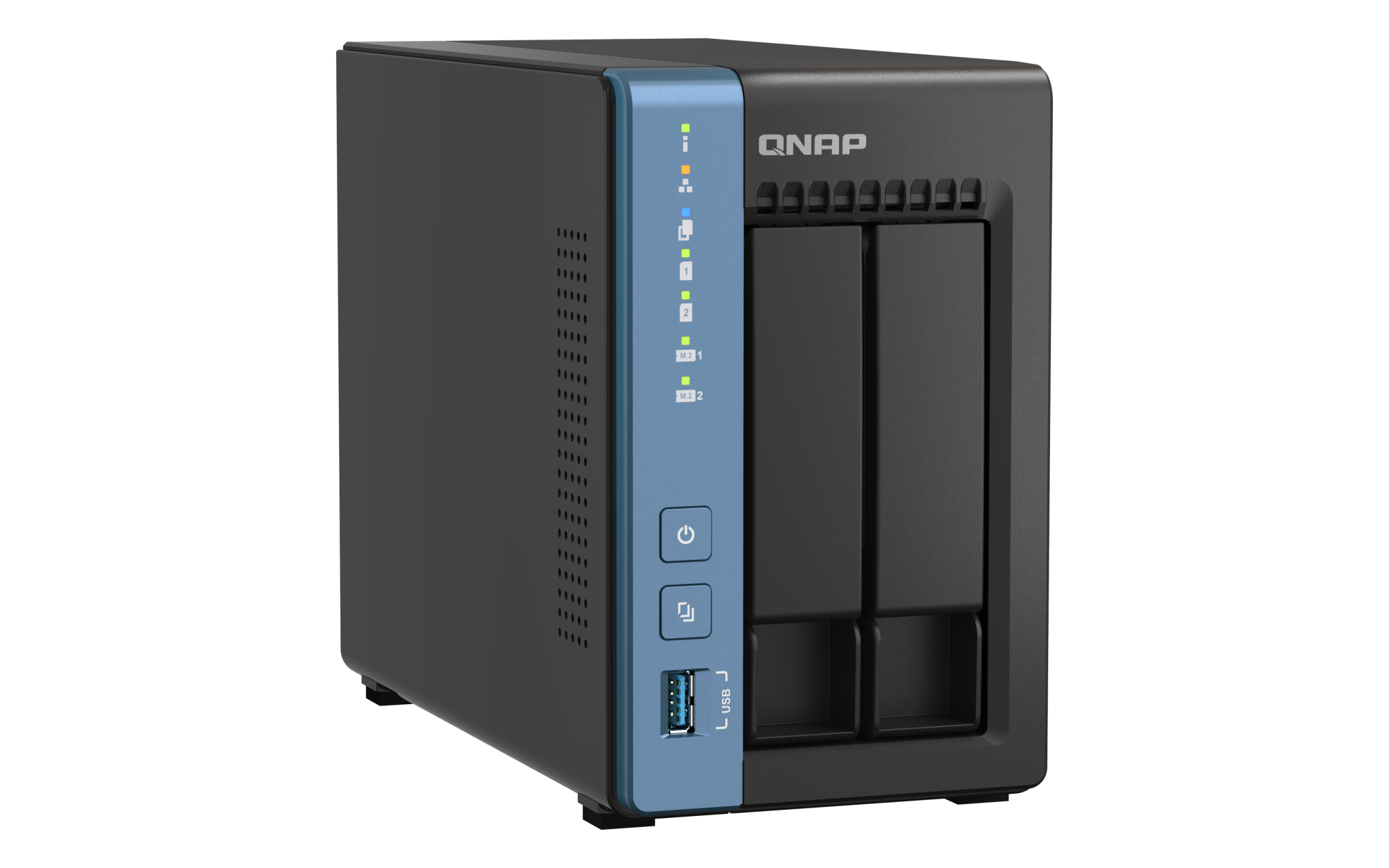 2.5英寸 SATA 固态硬盘热插拔 (不支持 M.2 SSD) M.2 插槽 2 x M.2 2280 PCIe Gen 3 x1 插槽 兼容 PCIe Gen 3 以上的 NVMe SSD。请查询兼容性清单 https://www.qnap.com.cn/compatibility/。以太网端口(RJ45) 1 网络唤醒(WOL) 巨帧 USB 2.0 端口 2 USB 3.2 Gen 1 端口 1 外形规格 直立式 LED 指示灯 系统状态、局域网、USB、HDD1~2、M.2 端口 按钮 电源,USB复制,系统重置 尺寸(高 x 宽 x 深) 182.88 × 106.68 × 220.98 mm 工作温度 0 - 40°C (32°F - 104°F) 存储温度 -20 - 70 °C (-4°F - 158°F) 相对湿度 5-95% RH (不凝结),湿球:27˚C (80.6˚F) 电源单元 60W 适配器,100-240V 功耗:典型工作模式 29.36 W NAS 装满硬盘的状态下所测试。风扇 1 x 80mm, 12VDC 系统警告 蜂鸣器 Kensington 安全性插槽 较大并发连接数(CIFS)- 配备内存上限 1500 注意:请仅使用 QNAP 内存模块来保持系统的性能与稳定性。若 NAS 设备有多个内存模块,请使用规格相同的 QNAP 模块,并参考硬件用户手册安装兼容的 QNAP 内存模块。