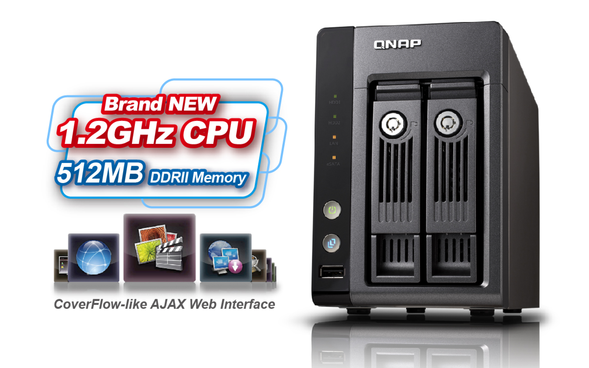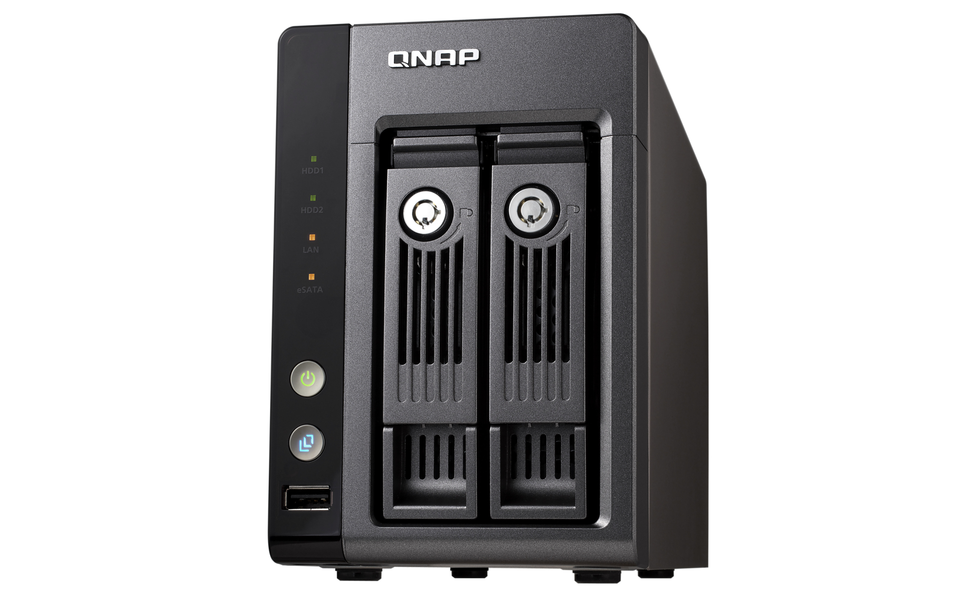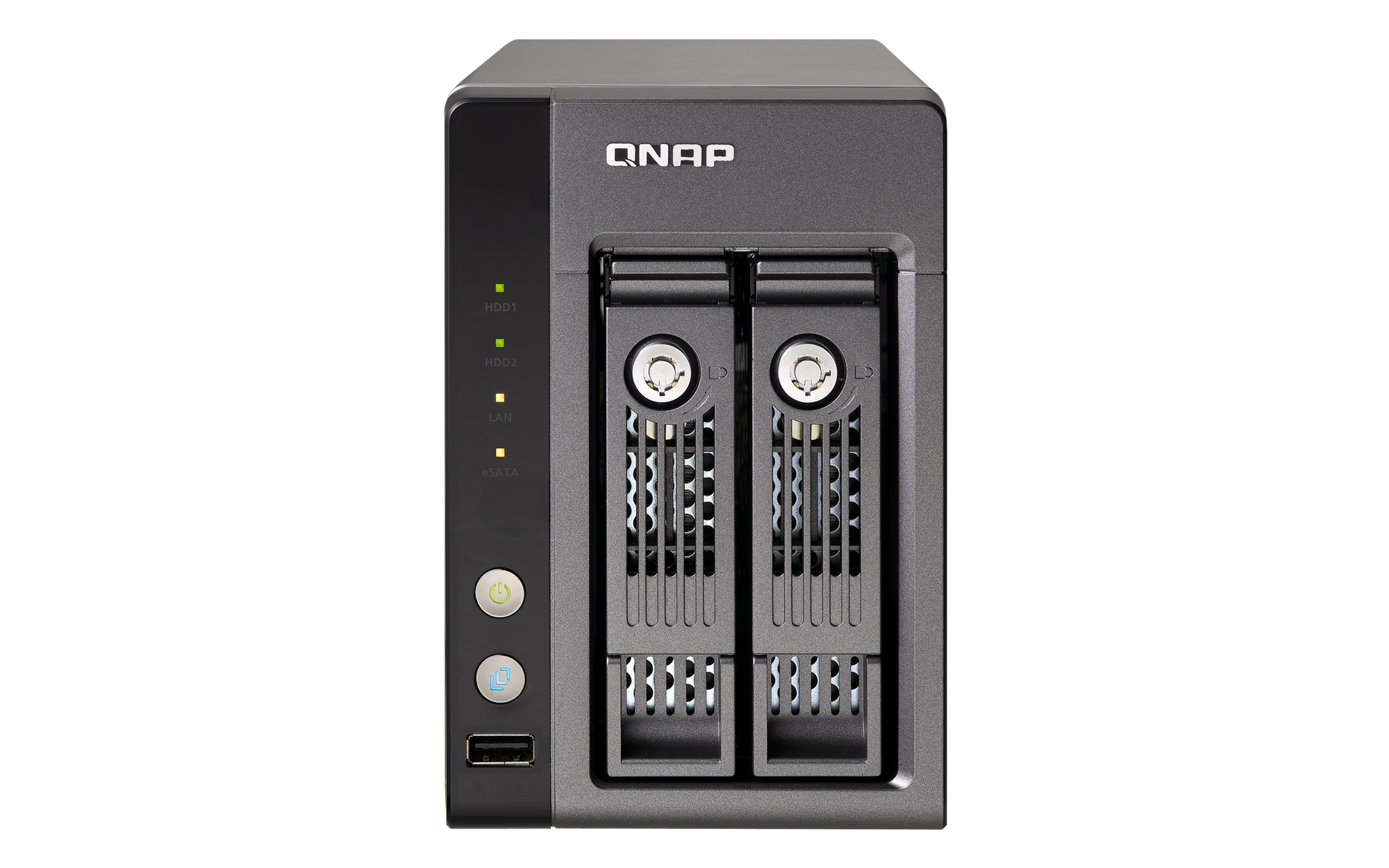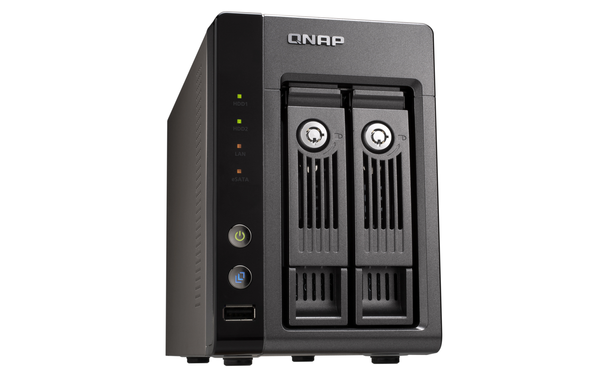 LED Indicators HDD 1, HDD 2, LAN, eSATA, Status, USB