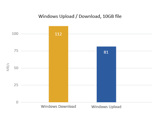 IOMeter configuration: Transferring 8GB file continuously to/from 2 PCs for 3 minutes. Block size: 64KB for SMB2.0 (Throughput)