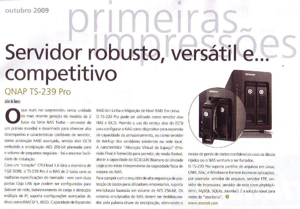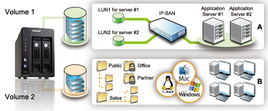 QNAP TS-239 Pro是新一代支持2颗硬盘的多功能NAS服务器,源自于全世界获奖无数的Turbo NAS系列。设计理念是提供给企业最可靠又兼具较好效能的多功能NAS服务器。此专业机种具备业界更优异的 RAID数据保护机制、并内建iSCSI (internet Small Computer System Interface)装置服务、以及专门为注重数据安全的企业用户所设计的AES 256-bit磁盘组群加密保护机制。 TS-239 Pro硬件搭载Intel Atom 1.6GHz CPU、1GB DDRII 内存,在支持2颗硬盘的同等级NAS中,TS-239 Pro是自有特点拥有可同时连接两个Giga网络,又支持网络容错 (Failover)、网络负载平衡 (Load-Balancing)和双网络 IP 设定的高安全性机种。TS-239 Pro 也支持RAID磁盘阵列管理(RAID0/1、JBOD)、在线RAID容量扩充与在线RAID组态迁移。这些更佳的高安全性数据防护机制对企业用户来说是绝对必要的。 TS-239 Pro支持磁盘群组加密技术,这个NAS的加密磁盘是必须藉由密码解锁才可以存取。此设计可避免机密数据外泄,当硬盘或NAS被偷的情形发生时,企业就不会有机密资料外泄的疑虑。TS-239 Pro除了能当一台多功能NAS服务器以外,也是一台iSCSI target server, 此内建的强大功能,提供一个负担的起的IP-SAN(存储局域网络)选择,并且虚空间分配(Thin Provisioning)特色,更让您可弹性分配iSCSI LUN的空间,您就可以省去管理实体的存储空间的麻烦。除此之外,TS-239 Pro支持跨Linux, Unix, Mac和Windows的档案分享,并提供更多的专业应用,例如: PHP MySQL/ SQLite的网站服务器、打印机服务器 (大量可同时支持三台)、文件服务器等企业所需的功能。TS-239 Pro无疑是一个办公室网络的良好存储解决方案。 全新的V3用户接口  低建置成本及高弹性的 iSCSI解决方案 TS-239 Pro能够同时支持NAS及iSCSI装置,提供中小企业一个兼具低成本高弹性及有效率的IP-SAN解决方案。iSCSI装置支持高达8组,能够作为 PC或服务器之存储空间的扩充,也可以当作服务器(如:数据库服务器、电子邮件服务器)之备份位置。针对iSCSI装置设定,TS-239 Pro更提供「存储资源随需分配」(Thin Provisioning)的功能。服务器管理员能够更有效率的在建置iSCSI装置的初期不受实体可存储空间的影响,预先做虚拟的配置。 AES 256-bit磁盘群组加密技术 针对极机密数据的高度保密的需求,TS-239 Pro支持AES 256-bit加密磁盘群组功能,用户必须输入密钥密码才能开启扇区以存取服务器的数据,即使硬盘不慎遗失,亦可不用担心机密数据被窃取。 双 Gigabit 网络端口支持多项设定 网络容错 (Failover) 网络容错提供了不间断的网络服务,当两个网络端口都连上网络时,一条网络线发生故障问题时,另一条可以继续提供网络服务。 网络负载平衡 (Load-Balancing) TS-239 Pro支持Bandwidth aggregation,增加档案的传输速率(需要搭配支持802.3ad设定的以太交换器)。 双网络 IP 设定 TS-239 Pro 可以设定两个不同的 IP,并同时服务在两个不同子网段的工作组。  专业级的高性能、高稳定性及具灾难防范机制的网络磁碟机 内建式微型硬盘记忆卡(DOM)搭载嵌入式防护的双操作系统 不同于一般NAS将操作系统安装于实体硬盘,TS-239 Pro所有的操作系统以及应用软件皆已事先嵌入了DOM。因此启动TS-239 Pro时,完全不需要读取实体的硬盘,而是读取内建的DOM,避免因为硬盘坏轨或是档案错误而造成的无法开机现象。嵌入在微型硬盘记忆卡的双操作系统,也会轮流执行开机程序,当其中一套操作系统失效时,另一套操作系统会自动递补上且完成开机动作,并且执行修复另一套操作系统的动作。双重保护之下,让系统处在较好的稳定状态。 先进的RAID磁盘阵列管理及支持热抽换设计 TS-239 Pro支持RAID 1镜像功能,提供您不间断与容易维护的服务。当数据发生异常,系统将会以Email警告及LED指示来告知管理者。硬盘可以在不关机的状况下,进行热插入的抽换。智能型的数据重构能力可以让使用者轻松地回复遗失的数据。 在线RAID容量扩充 RAID容量扩充让用户可在保留所有数据、不停机的情况下,一步一步地顺利的进行RAID容量扩充。 在线RAID组态迁移 在线RAID组态迁移让使用者可透过简易步骤,在不停机且保留数据的状态下进行RAID等级迁移。 透过虚拟磁盘 ,弹性扩充您的 NAS 容量 经由独特的「外接虚拟磁盘」,管理者能更弹性地扩充 NAS 的容量。透过内建的iSCSI initiator功能来连接网络上其他 iSCSI target,可将其变成系统上的虚拟磁盘。QNAP NAS 可做为堆栈主装置 (stack master) ,连接多达 8 个虚拟磁盘/堆栈目标 (stack targets)。因此,所有的 NAS 使用者仅需联机至此单一入口,即可使用位于其它网络存储装置上的空间。  内建iSCSI 装置服务 对中小企业而言,针对现在使用中的服务器能够拥有一个理想的高性能及存储空间扩充解决方案是必要的。然而,目前市面上大部分相关产品,不是不够有效率的应用 (如:DAS,Direct Attached Storage) 就是所费不赀及过于复杂 (如:Fiber Channel SAN)。 威连通的TS-239 Pro 能够同时支持NAS及iSCSI 装置,提供建置IP-SAN一个低成本及有效率的解决方案。服务器管理员能够使用内建的iSCSI 装置服务建立大量八组装置。不同的iSCSI逻辑单元数(LUNs: Logical Unit Number) 能够做为现有存储空间的扩充或是现存应用服务器 (如:数据库服务器、电子邮件服务器)的备份位置。 此外,针对iSCSI 装置设定,TS-239 Pro 更提供「存储资源随需分配」(Thin Provisioning) 的功能。服务器管理员能够更有效率的在建置iSCSI逻辑单元数(LUN)的初期不