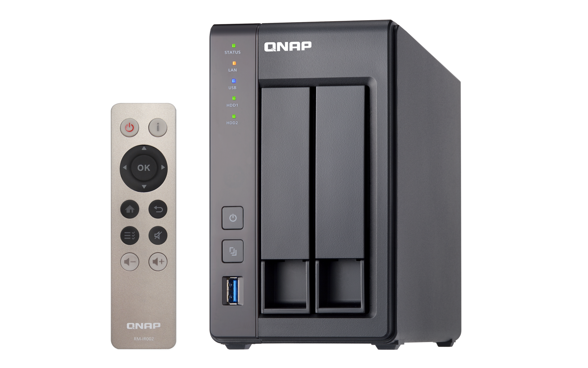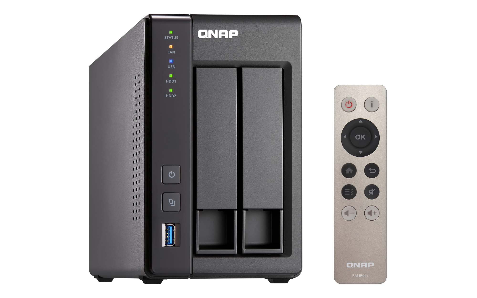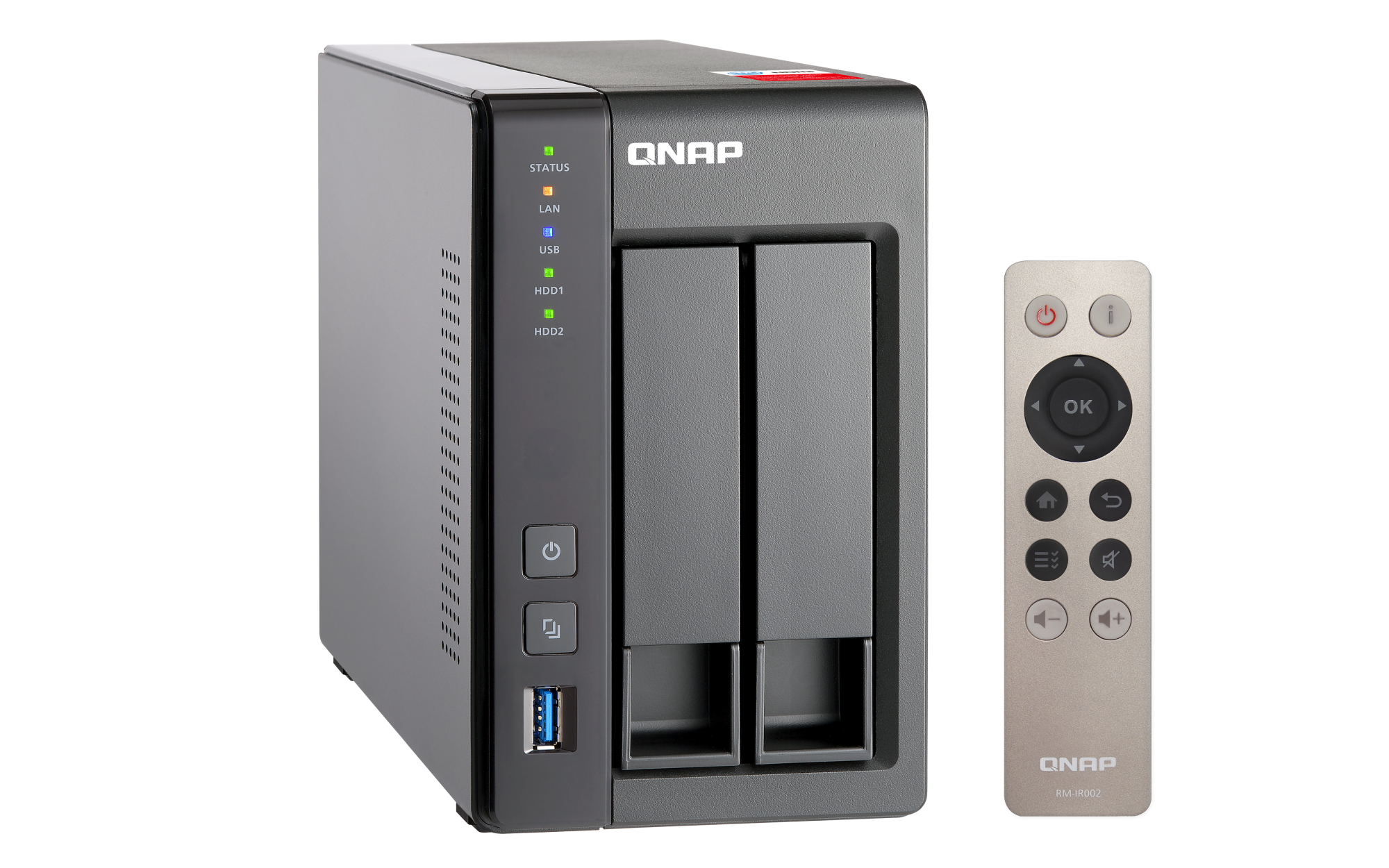 2.5 英寸 SATA 固态硬盘热插拔 SSD 缓存加速支持 以太网端口(RJ45) 2 网络唤醒(WOL) 巨帧 USB 2.0 端口 2 USB 3.2 Gen 1 端口 2 红外传感器 (RM-IR002 & MCE) HDMI™ 输出 1, (最高支持 1080p) 外形规格 直立式 LED 指示灯 电源,状态,局域网,USB,HDD1-2 按钮 电源,系统重置,USB自动复制 尺寸(高 x 宽 x 深) 168.5 × 102 × 225 mm 净重 1.28 kg 毛重 2.32 kg 工作温度 0 - 40°C (32°F - 104°F) 存储温度 -20 - 70 °C (-4°F - 158°F) 相对湿度 5-95% RH (不凝结),湿球:27˚C (80.6˚F) 电源单元 60W/65W 适配器(12VDC),100-240VAC 功耗:磁盘待机模式 10.56 W 功耗:典型工作模式 18.09 W 风扇 1 x 70mm,12VDC 系统警告 蜂鸣器 Kensington 安全性插槽 标准保修 2 较大并发连接数(CIFS)- 配备内存上限 1500 注意:请仅使用 QNAP 内存模块来保持系统的性能与稳定性。若 NAS 设备有多个内存模块,请使用规格相同的 QNAP 模块,并参考硬件用户手册安装兼容的 QNAP 内存模块。
