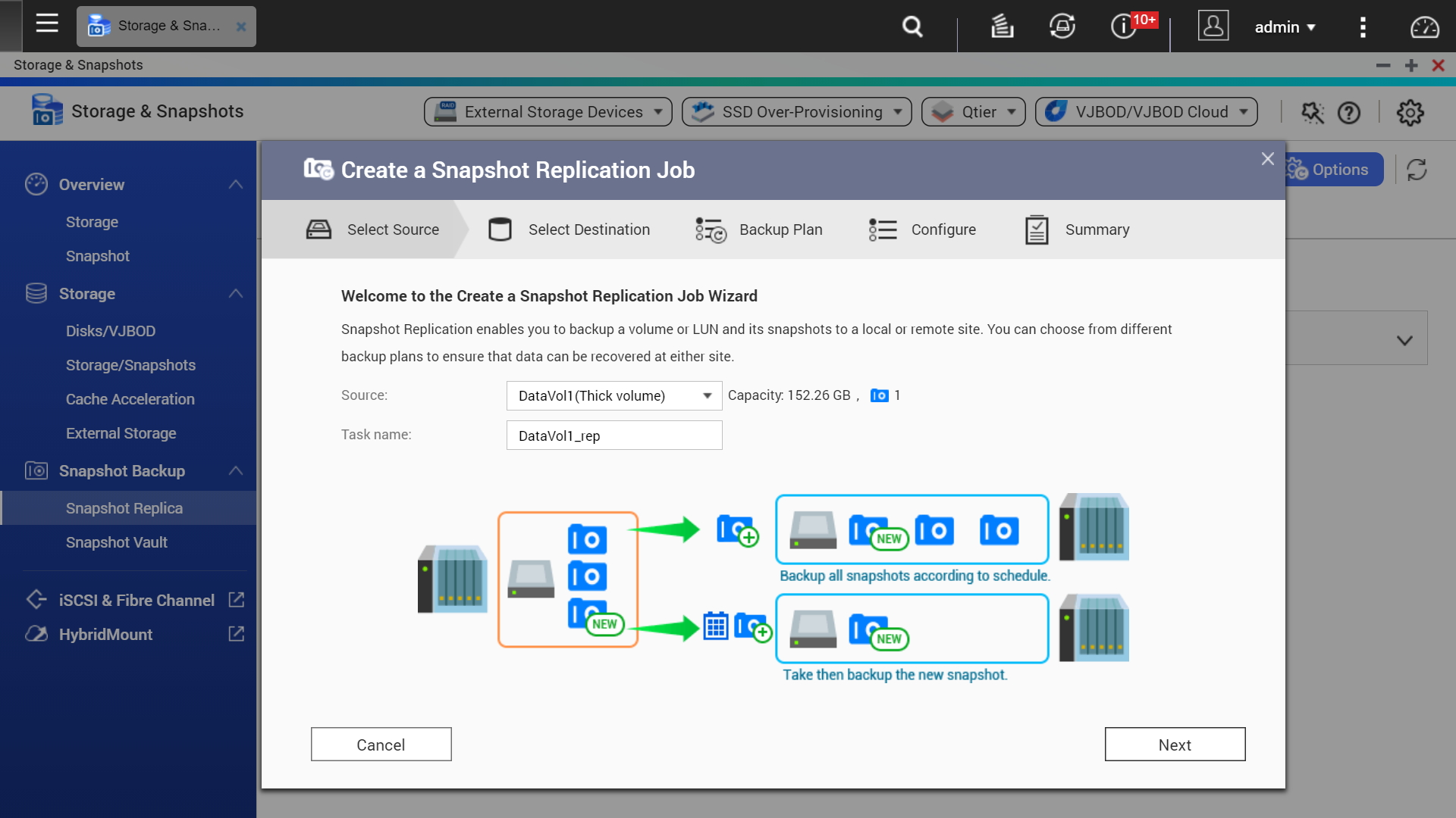 TS-262C 中的快照文件可再备份至另一台 NAS (快照副本;Snapshot Replica),仅会复制变动的快照内容,可节省时间和带宽,支持手动或排程设置。快照备份再备份,资料保障更完备。