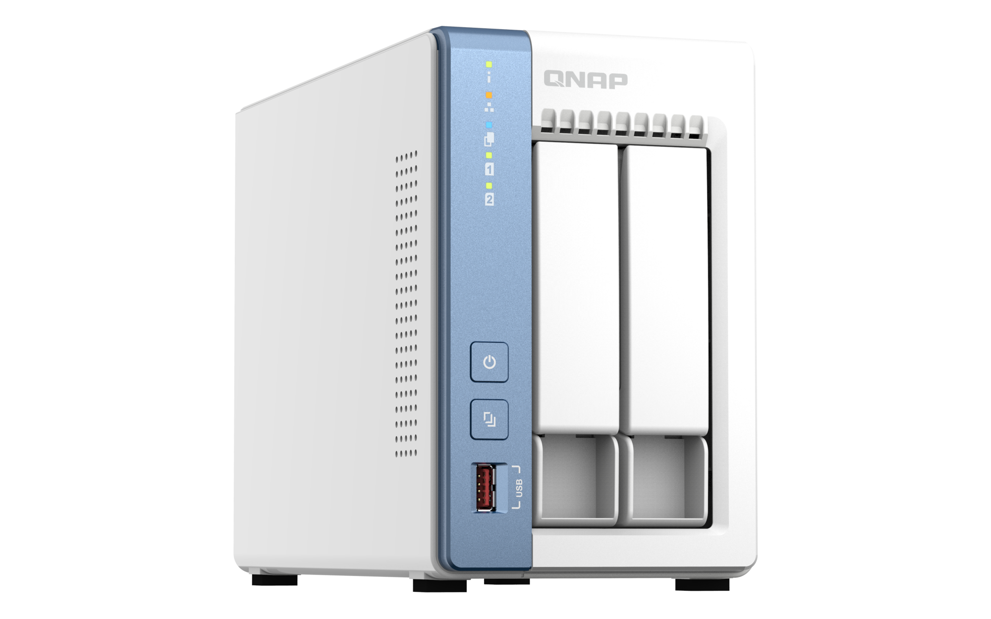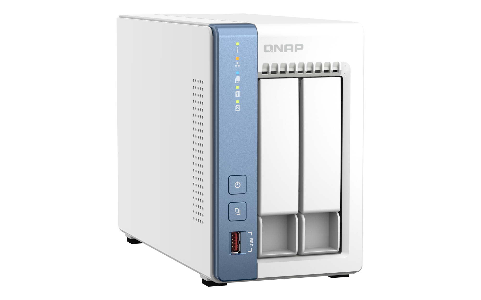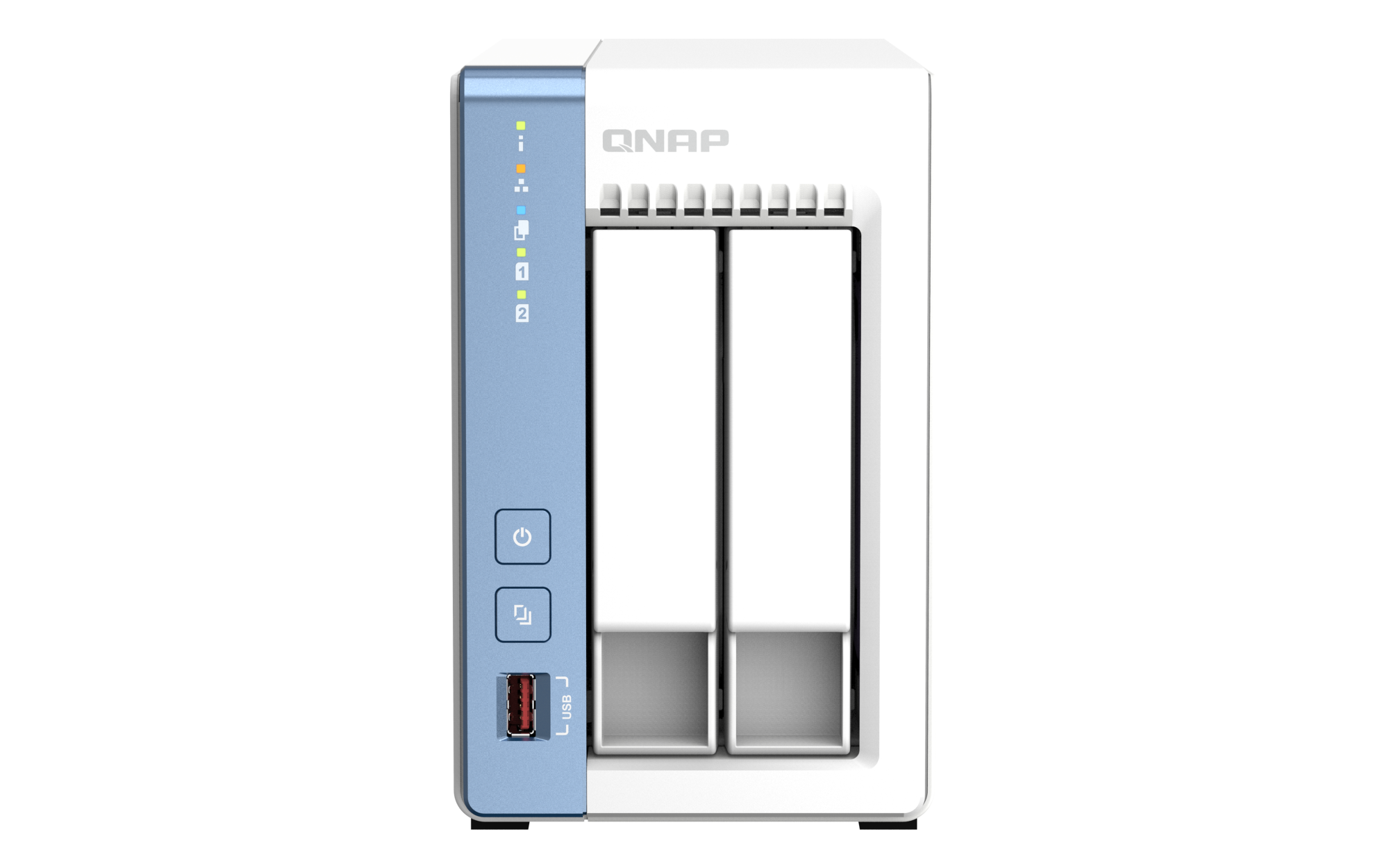 2.5英寸 SATA 固态硬盘热插拔 SSD 缓存加速支持 2.5 G以太网端口(2.5G/1G/100M) 1(2.5G/1G/100M/10M) 网络唤醒(WOL) 巨帧 USB 2.0 端口 1 USB 3.2 Gen 2 (10Gbps) 端口 2 x Type-A USB 3.2 Gen2 10Gbps HDMI™ 输出 1,HDMI™ 4K 外形规格 直立式 LED 指示灯 系统状态、局域网、USB、HDD1~2 按钮 电源,USB复制,系统重置 尺寸(高 x 宽 x 深) 170 × 106.68 × 220.98 mm 净重 1.56 kg 毛重 2.44 kg 工作温度 0 - 40°C (32°F - 104°F) 存储温度 -20 - 70 °C (-4°F - 158°F) 相对湿度 5-95% RH (不凝结),湿球:27˚C (80.6˚F) 电源单元 最小 60W 适配器,100-240V 功耗:典型工作模式 31.549 W NAS 装满硬盘的状态下所测试。风扇 1 x 80mm, 12VDC 系统警告 蜂鸣器 Kensington 安全性插槽 较大并发连接数(CIFS)- 配备内存上限 1500 注意:请仅使用 QNAP 内存模块来保持系统的性能与稳定性。若 NAS 设备有多个内存模块,请使用规格相同的 QNAP 模块,并参考硬件用户手册安装兼容的 QNAP 内存模块。