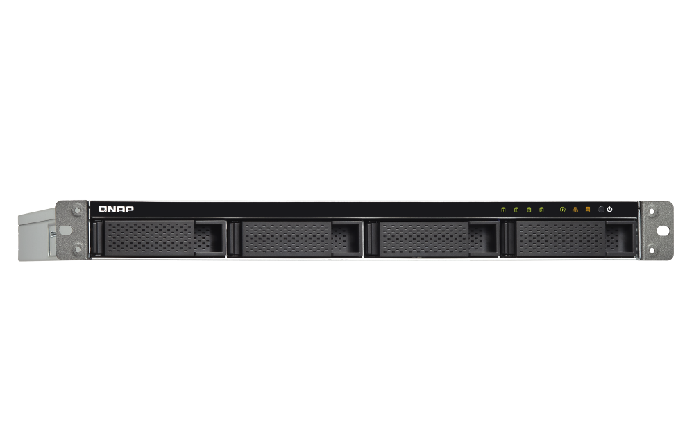 插槽 1:PCIe Gen 2 x2PCIe 带宽限制将限制 NAS 10GbE 的性能。USB 3.2 Gen 1 端口 4 外型 1U 机架式 LED 指示灯 HDD 1-4、状态、网络、存储扩充 按钮 电源、系统重置 尺寸 (高 x 宽 x 深) 44 × 439 × 499 mm 重量 (净重) 8.06 kg 重量 (总重) 11.06 kg 操作温度 0 - 40°C (32°F - 104°F) 存储温度 -20 - 70 °C (-4°F - 158°F) 相对湿度 5-95% RH (不凝结),湿球:27˚C (80.6˚F) 电源供应器 250W (x2) PSU,100 - 240V Power Consumption: Disk Standby Mode 35.12 W 耗电量:运作模式,一般 48.75 W NAS 装满硬盘的状态下所测试。风扇 2 x 40mm,12VDC 系统警示 蜂鸣器 标准保固 3 同时联机 (CIFS) 数目上限-内存上限 700 注意:请仅使用 QNAP 内存模块来保持系统的性能与稳定性。若 NAS 设备有多个内存模块,请使用规格相同的 QNAP 模块,并参考硬件用户手册安装兼容的 QNAP 内存模块。