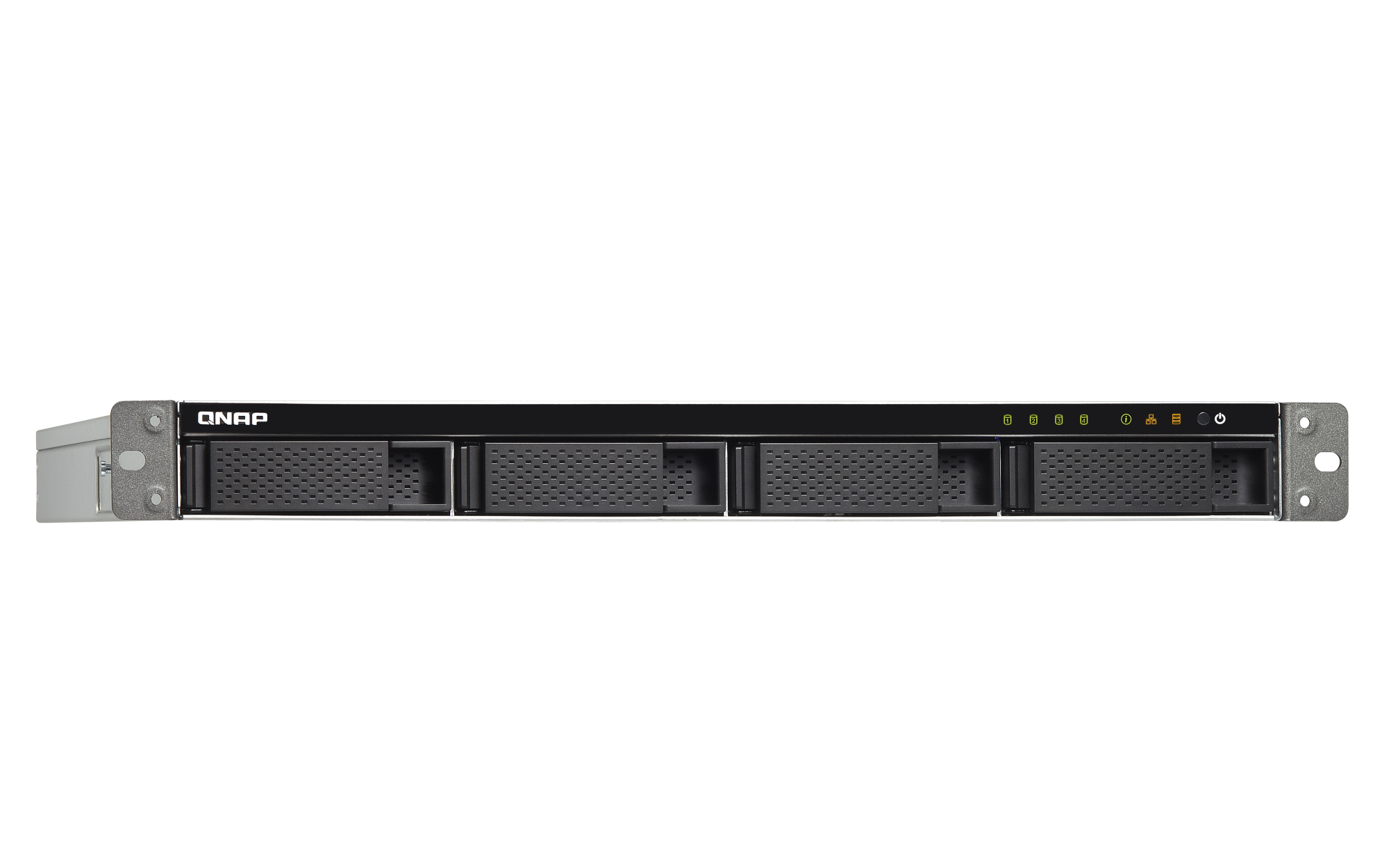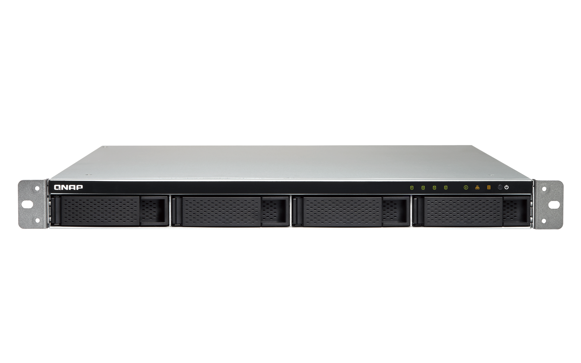 插槽 1:PCIe Gen 2 x2PCIe 带宽限制将限制 NAS 10GbE 性能。USB 3.2 Gen 1 端口 4 外形规格 1U 机架式 LED 指示灯 HDD 1-4、状态、局域网、存储扩展 按钮 电源、系统重置 尺寸(高 x 宽 x 深) 44 × 439 × 499 mm 净重 8.06 kg 毛重 11.06 kg 工作温度 0 - 40°C (32°F - 104°F) 存储温度 -20 - 70 °C (-4°F - 158°F) 相对湿度 5-95% RH (不凝结),湿球:27˚C (80.6˚F) 电源单元 250W(x2)PSU,100 - 240V 功耗:磁盘待机模式 35.12 W 功耗:典型工作模式 48.75 W NAS 装满硬盘的状态下所测试。风扇 2 x 40mm,12VDC 系统警告 蜂鸣器 标准保修 3 较大并发连接数(CIFS)- 配备内存上限 700 注意:请仅使用 QNAP 内存模块来保持系统的性能与稳定性。若 NAS 设备有多个内存模块,请使用规格相同的 QNAP 模块,并参考硬件用户手册安装兼容的 QNAP 内存模块。