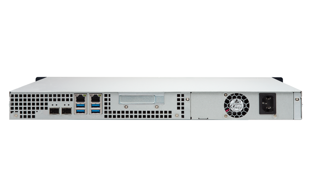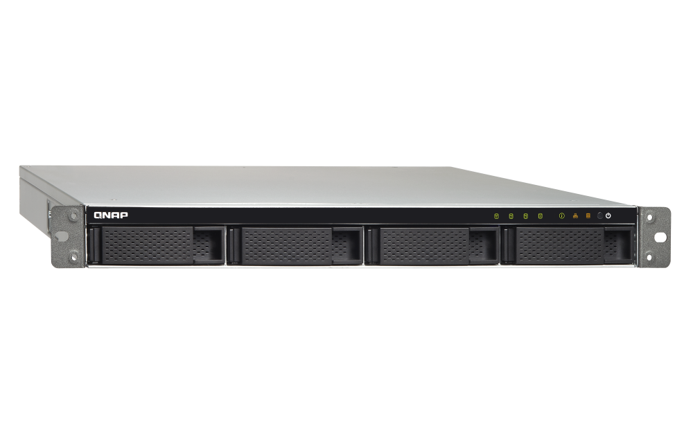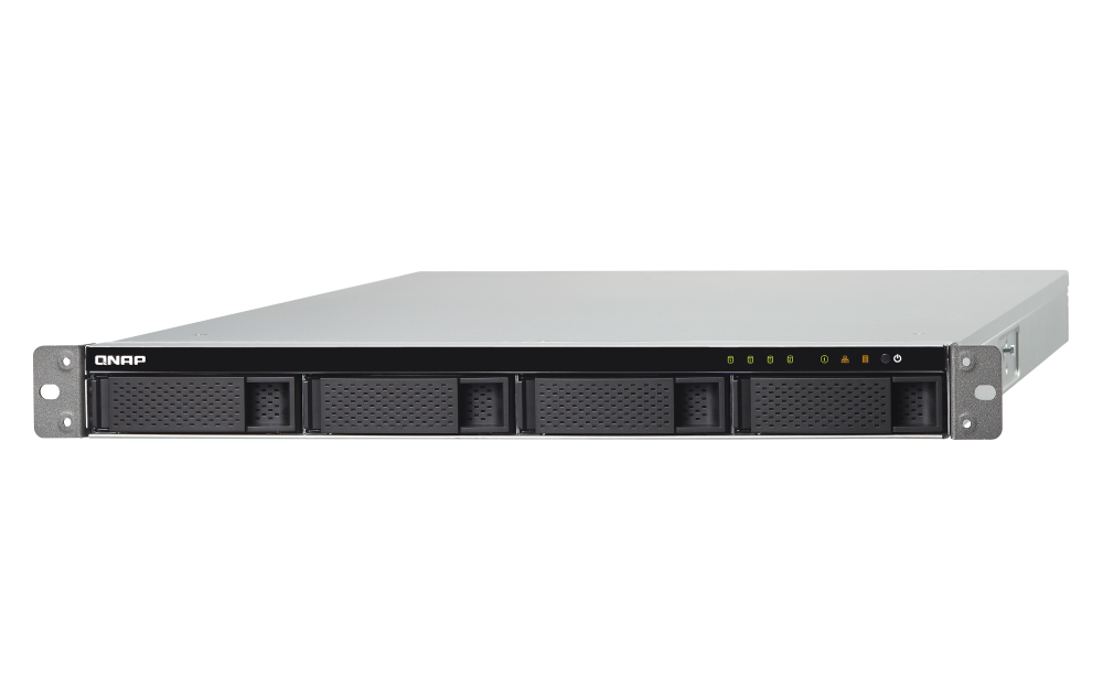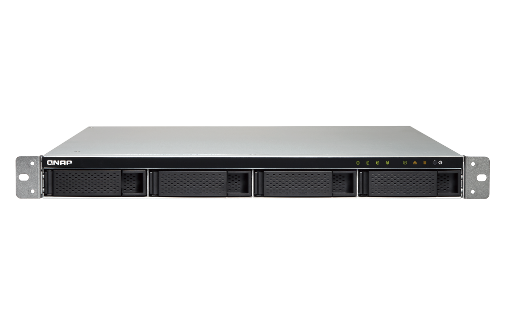 插槽 1:PCIe Gen 2 x2PCIe 带宽限制将限制 NAS 10GbE 的性能。USB 3.2 Gen 1 端口 4 外型 1U 机架式 LED 指示灯 HDD 1-4、状态、网络、存储扩充 按钮 电源、系统重置 尺寸 (高 x 宽 x 深) 44 × 439 × 499 mm 重量 (净重) 6.54 kg 重量 (总重) 9.54 kg 操作温度 0 - 40°C (32°F - 104°F) 存储温度 -20 - 70 °C (-4°F - 158°F) 相对湿度 5-95% RH (不凝结),湿球:27˚C (80.6˚F) 电源供应器 250W PSU,100 - 240V Power Consumption: Disk Standby Mode 20.52 W 耗电量:运作模式,一般 33.2 W NAS 装满硬盘的状态下所测试。风扇 2 x 40mm,12VDC 系统警示 蜂鸣器 标准保固 3 同时联机 (CIFS) 数目上限-内存上限 700 注意:请仅使用 QNAP 内存模块来保持系统的性能与稳定性。若 NAS 设备有多个内存模块,请使用规格相同的 QNAP 模块,并参考硬件用户手册安装兼容的 QNAP 内存模块。