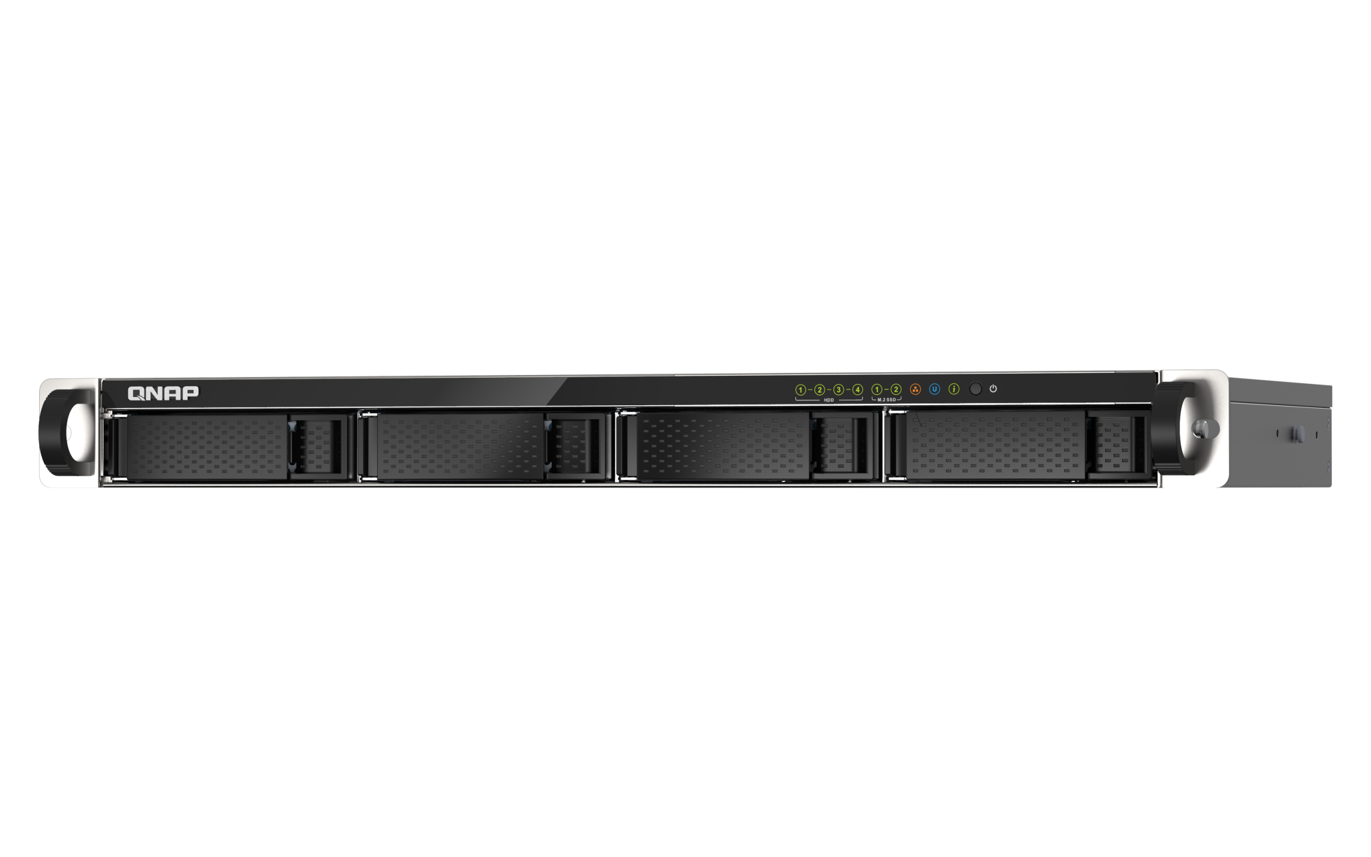 2.5 英寸 SATA 固态硬盘热插拔 (不支持 M.2 SSD) M.2 插槽 2 x M.2 2280 PCIe Gen 3 x1 插槽 兼容 PCIe Gen 3 以上的 NVMe SSD。请查询兼容性清单 https://www.qnap.com.cn/compatibility/。SSD 缓存加速支持 2.5 G以太网端口(2.5G/1G/100M) 2(2.5G/1G/100M) 10 G以太网端口 2 x 10GbE SFP+ 网络唤醒(WOL) 巨帧 USB 2.0 端口 2 USB 3.2 Gen 1 端口 2 外形规格 1U 短深度机架式 LED 指示灯 HDD 1-4、状态、局域网、USB、M.2 SSD 1-2 按钮 电源、系统重置 尺寸(高 x 宽 x 深) 43.3 × 430 × 292.12 mm 不包括耳挂和电源单元的凸出部分。净重 4.91 kg 毛重 5.82 kg 工作温度 0 - 40°C (32°F - 104°F) 存储温度 -20 - 70 °C (-4°F - 158°F) 相对湿度 5-95% RH (不凝结),湿球:27˚C (80.6˚F) 电源单元 100W PSU,100-240V 功耗:磁盘待机模式 17.367 W 功耗:典型工作模式 30.878 W 风扇 3 x 40mm,12VDC 系统警告 蜂鸣器 Kensington 安全性插槽 标准保修 3 较大并发连接数(CIFS)- 配备内存上限 1500 注意:请仅使用 QNAP 内存模块来保持系统的性能与稳定性。若 NAS 设备有多个内存模块,请使用规格相同的 QNAP 模块,并参考硬件用户手册安装兼容的 QNAP 内存模块。