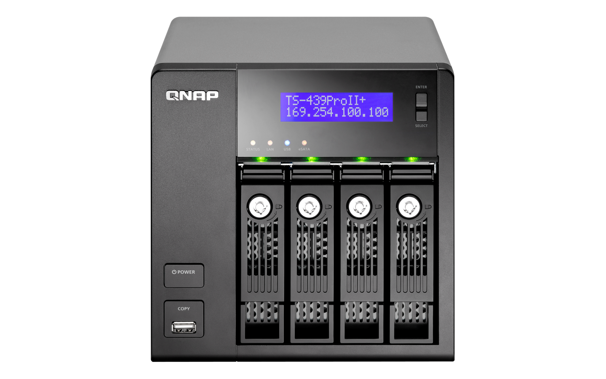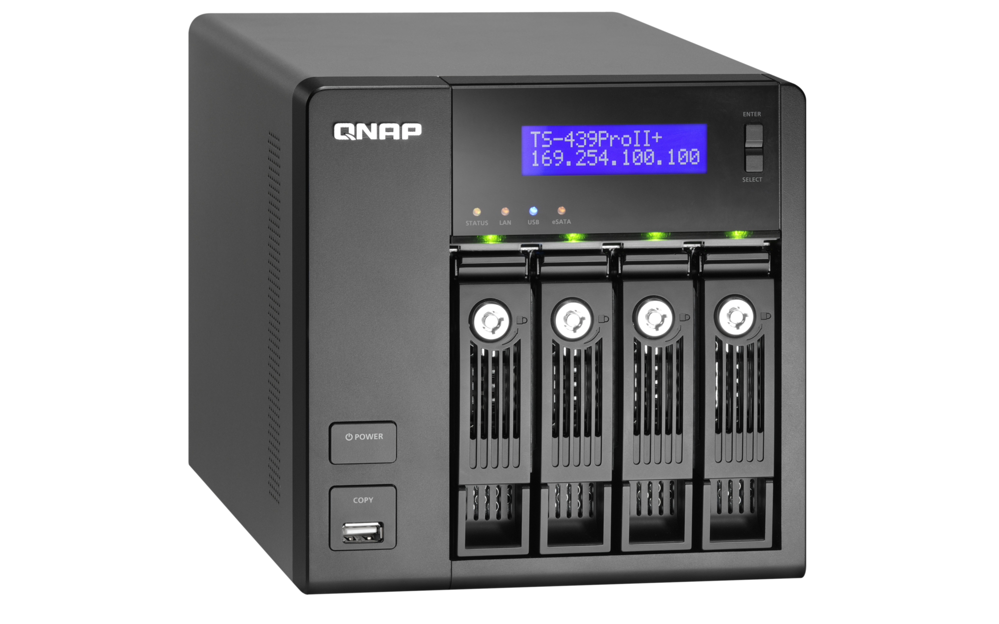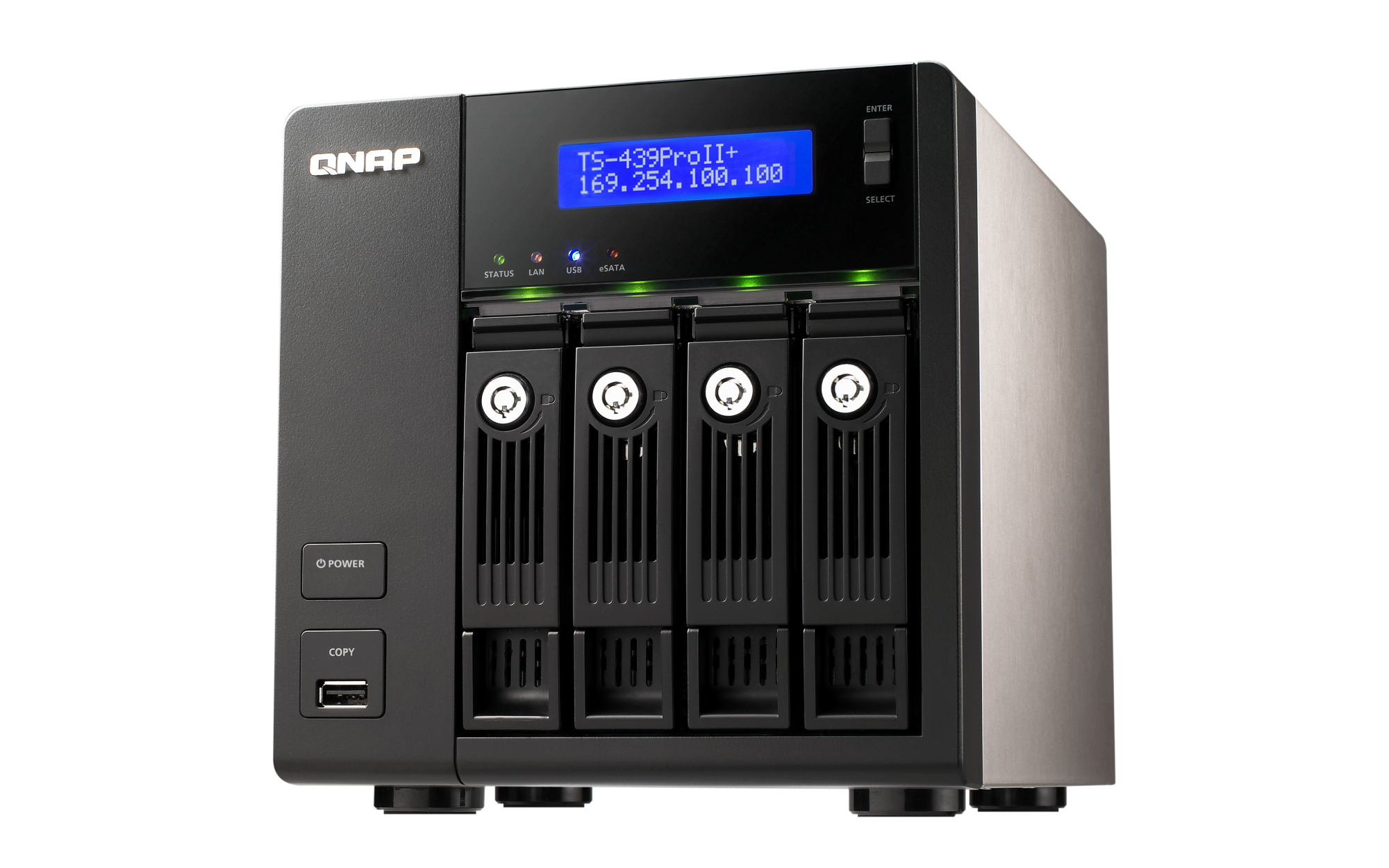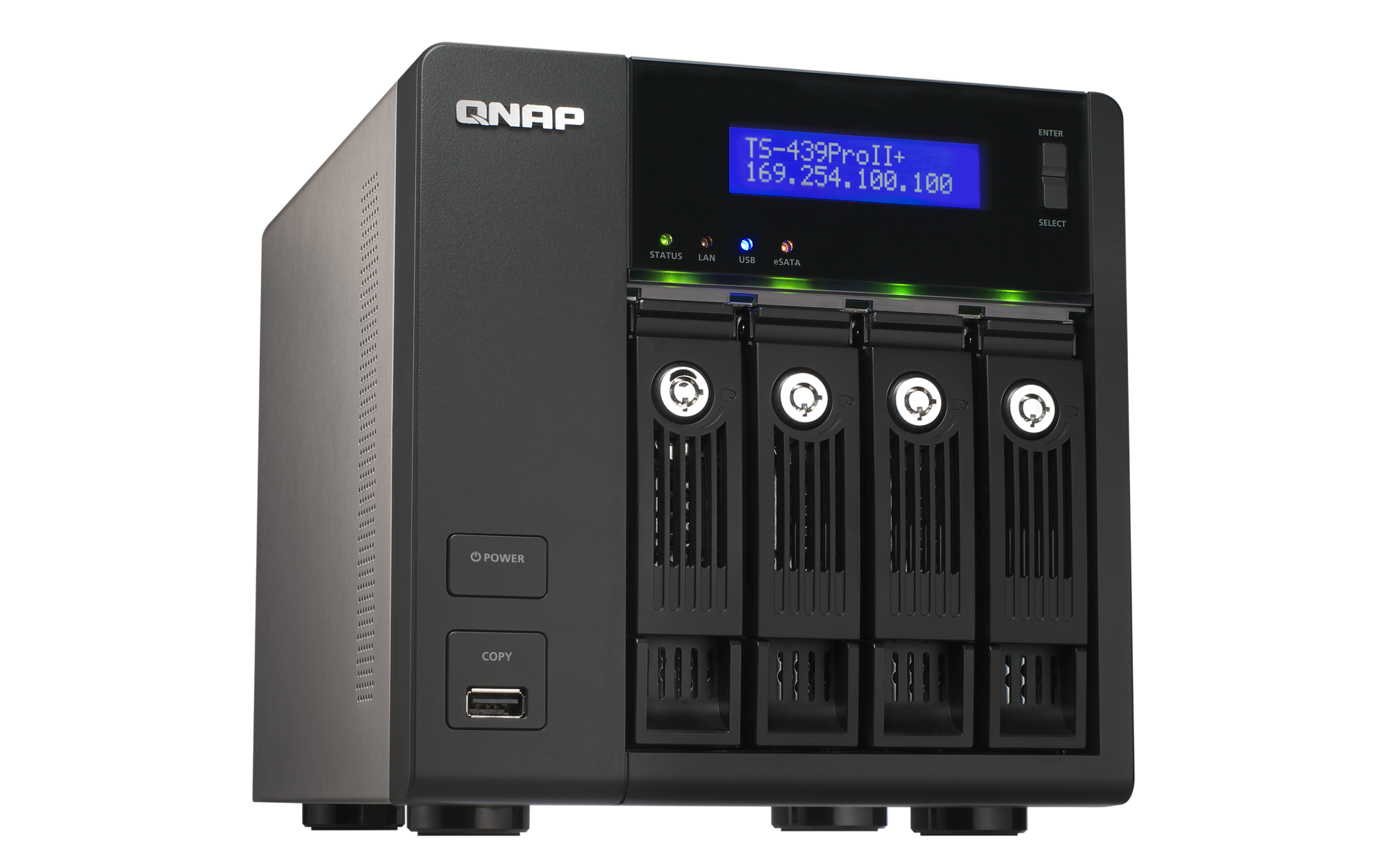 | LED Indicators | Status, LAN, USB, eSATA, Power, HDD 1, HDD 2, HDD 3, HDD 4 |