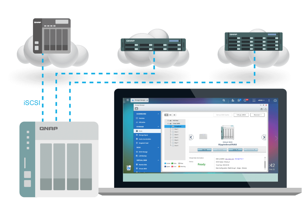 *远程 QNAP NAS 需支持 iSCSI 服务及储存池,并将固件升级至 QTS 4.2.1 或以上版本。 目前大量支持 8 台远程 NAS 加入。