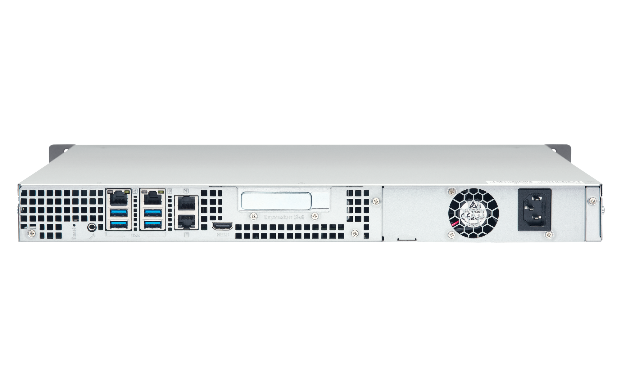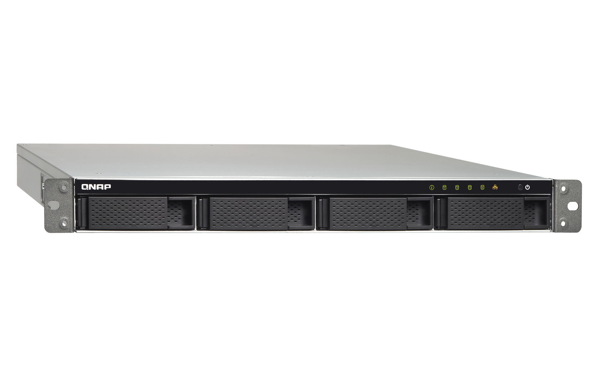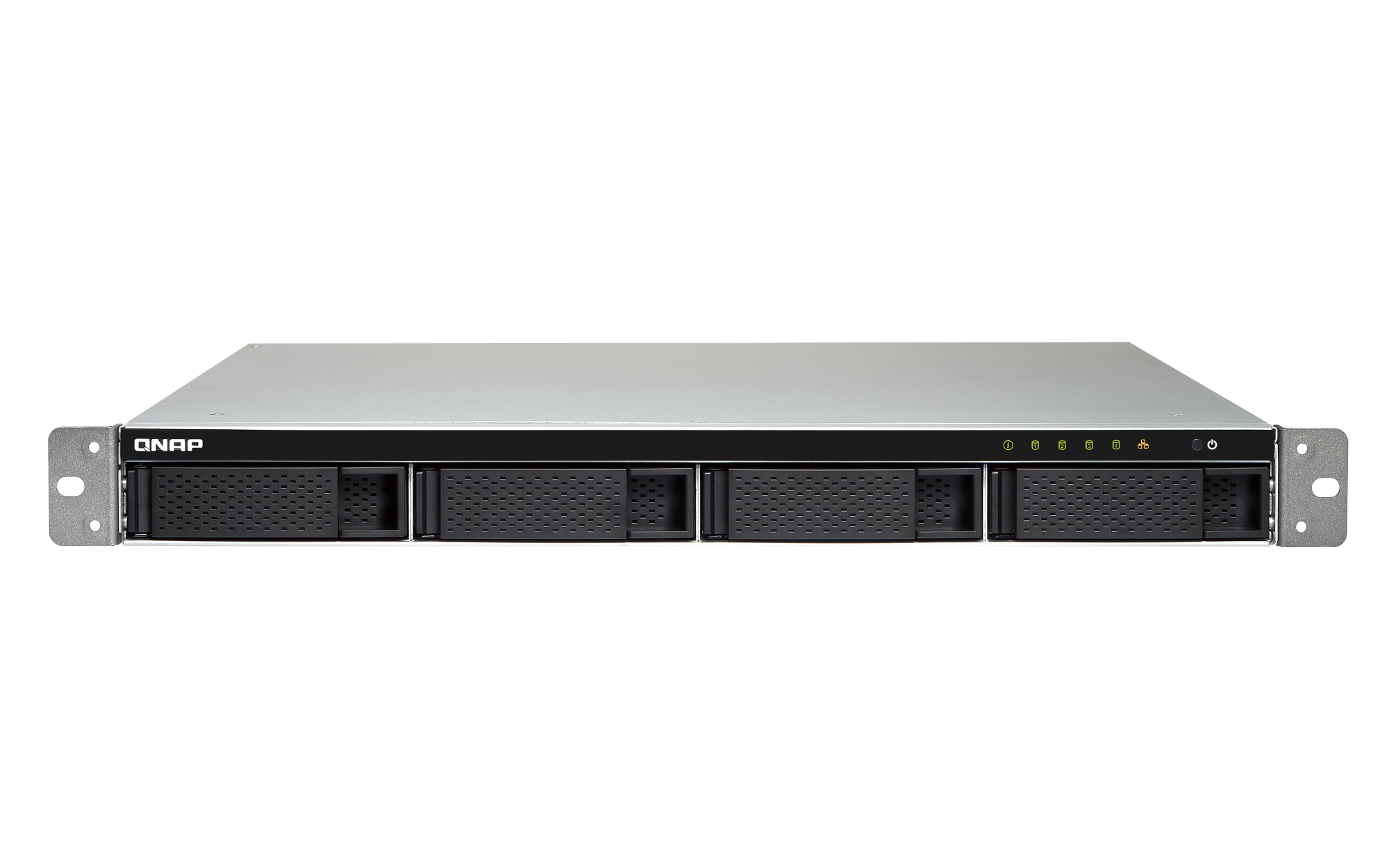 插槽 1:PCIe Gen 2 x2PCIe 带宽限制将限制 NAS 10GbE 性能。USB 3.2 Gen 1 端口 4 USB 3.2 Gen 2 (10Gbps) 端口 通过 PCIe 适配器可选 HDMI™ 输出 1, HDMI™ 1.4b (up to 3840 x 2160 @ 30Hz) 外形规格 1U 机架式 LED 指示灯 HDD 1-4、状态、局域网、扩展、电源 按钮 电源、系统重置 尺寸(高 x 宽 x 深) 44 × 439 × 499 mm 净重 7.46 kg 毛重 9.5 kg 工作温度 0 - 40°C (32°F - 104°F) 存储温度 -20 - 70 °C (-4°F - 158°F) 相对湿度 5-95% RH (不凝结),湿球:27˚C (80.6˚F) 电源单元 ATX 250W (x1),输入:100V-240V ~ / 5A-2.5A,50Hz-60Hz 功耗:磁盘待机模式 21.3 W 功耗:典型工作模式 33.72 W NAS 装满硬盘的状态下所测试。风扇 2 x 40mm,12VDC 系统警告 蜂鸣器 标准保修 3 较大并发连接数(CIFS)- 配备内存上限 1500 注意:请仅使用 QNAP 内存模块来保持系统的性能与稳定性。若 NAS 设备有多个内存模块,请使用规格相同的 QNAP 模块,并参考硬件用户手册安装兼容的 QNAP 内存模块。