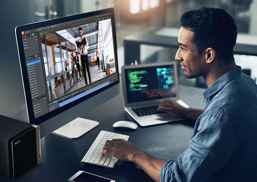 不再让照片塞爆手机存储空间,在您的手机上安装 Qfile,照片将自动备份到 NAS。TS-464 更支持 Intel® UHD Graphics 绘图芯片,可有感加速影片转档为 1080p / 720p,即便用手机 4G / 5G 网络,联机播放 NAS 里的影片,也能顺畅播放不卡顿。