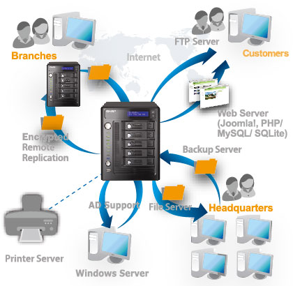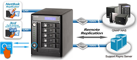 - 加密异地备援:Turbo NAS的数据可以透过网络加密备份到其它的QNAP NAS系列产品。