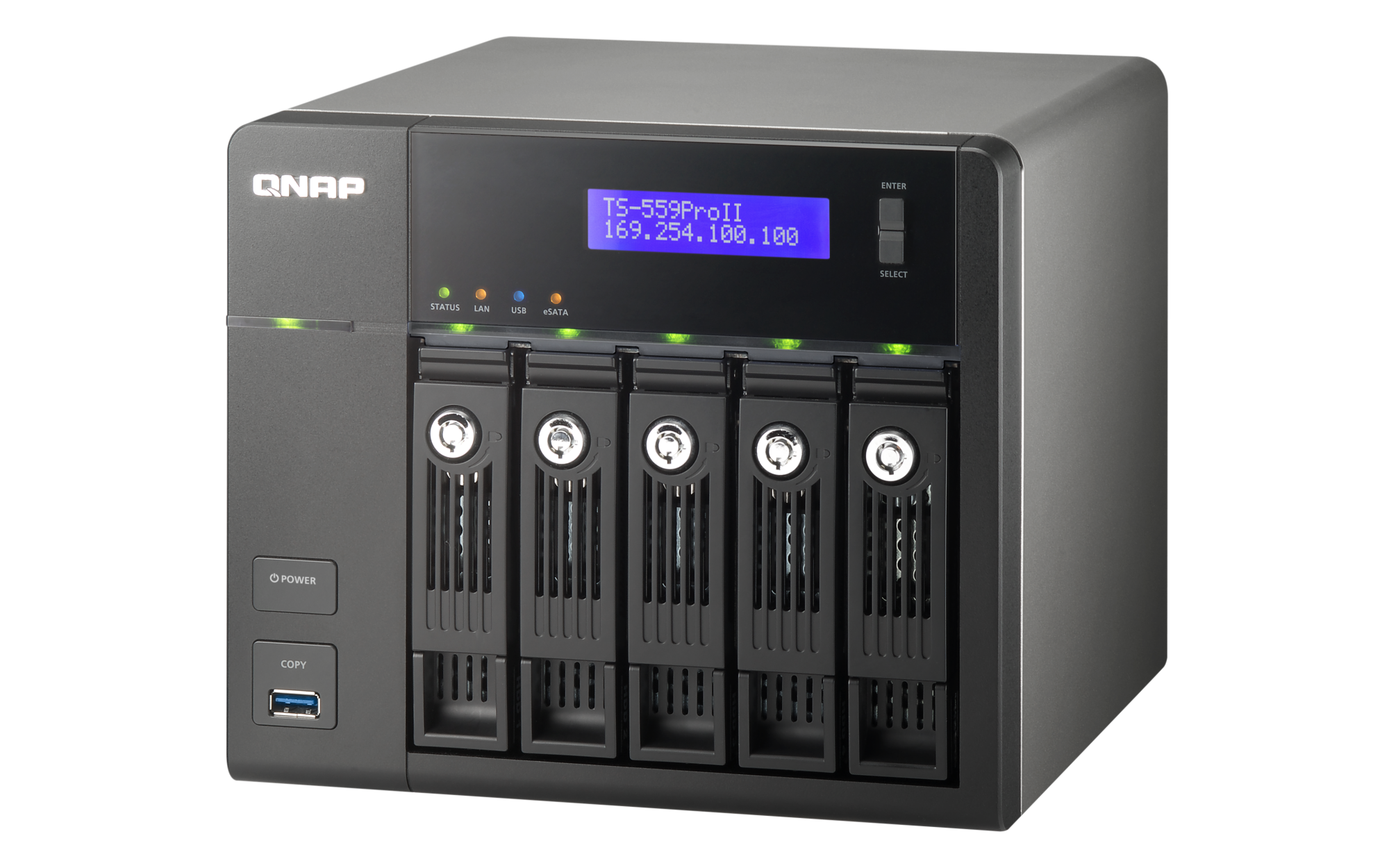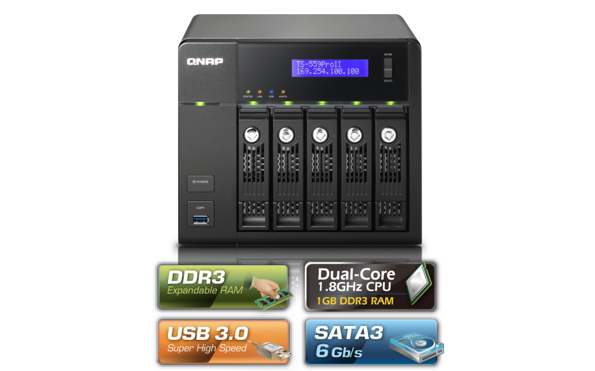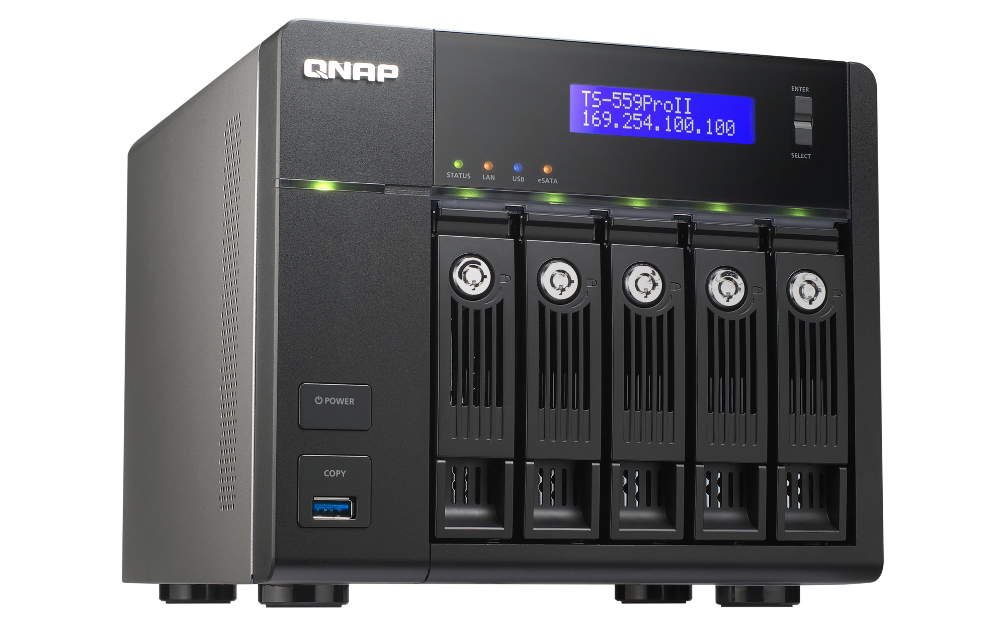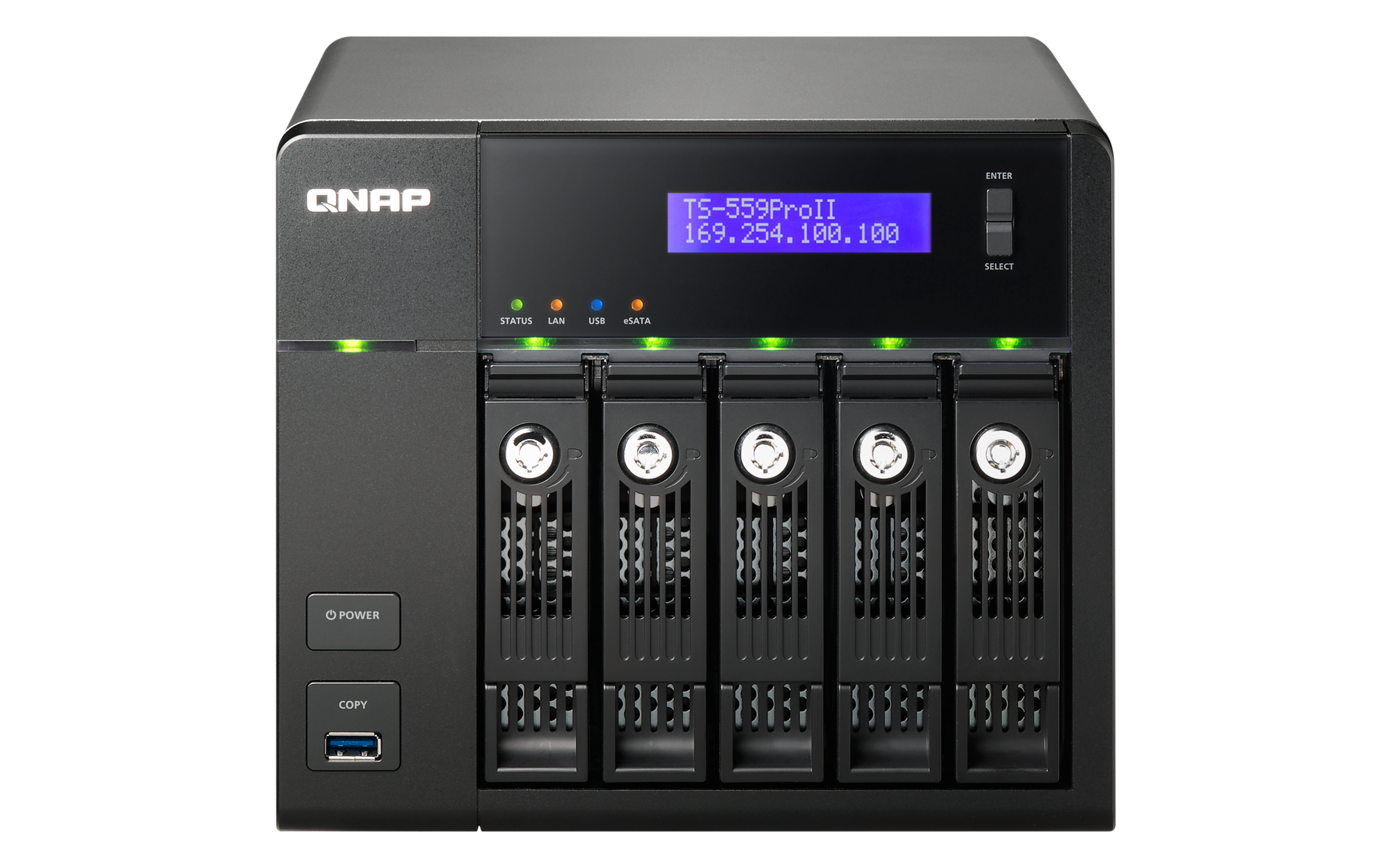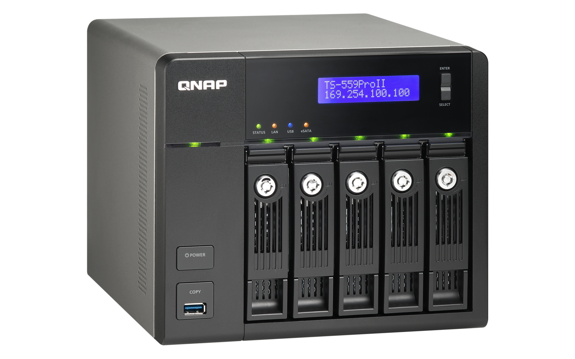 | LED Indicators | Status, LAN, USB, eSATA, Power, HDD 1, HDD 2, HDD 3, HDD 4, HDD 5 |