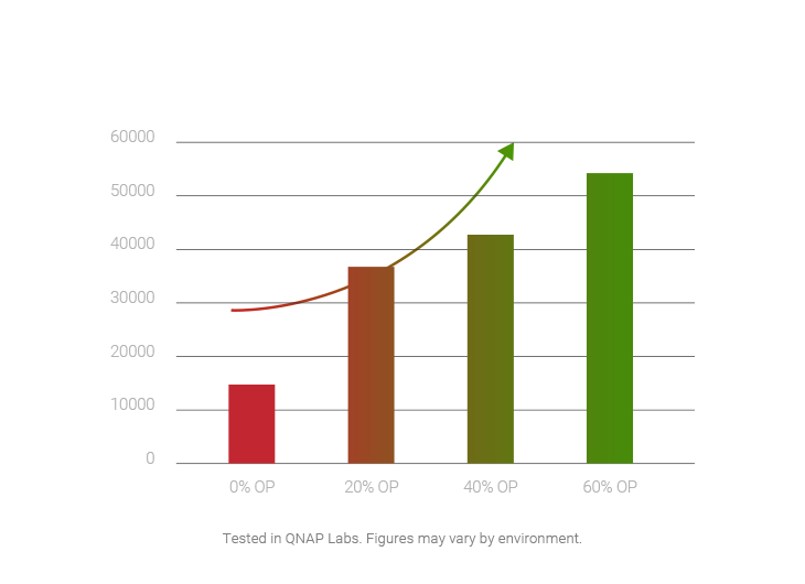 SSD 价格不再高不可攀,即使是小型办公室或中小企业也可轻松配置,让 NAS 应用更快速流畅。全新版 QTS 4.3.5 支持于 RAID 层级配置 SSD 外挂预留空间 (Over-provisioning,简称 OP) 的功能,让您依应用需求再弹性增加 SSD OP 预留空间 (1% ~ 60%),进一步提升 SSD 效能及耐用性,同时也能延长硬盘使用寿命,让 SSD 性价比更高!现在,您不用花大钱买昂贵的高阶 SSD,就能在 TS-677 里自行调整 OP 预留空间,享有媲美企业级 SSD 的较高效能与寿命,无论文件备份、影音娱乐、或虚拟化等应用都更加快速而流畅。