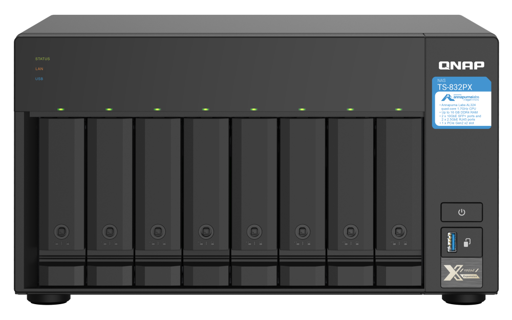 CPU AnnapurnaLabs Alpine AL324 ARM® Cortex-A57 四核心 1.7GHz 处理器 CPU 架构 64 位 ARM 浮点运算 加密引擎 系统内存 4 GB SODIMM DDR4 (1 x 4 GB) 内存上限 16 GB(1 x 16 GB) 内存插槽 1 x SODIMM DDR4 闪存 512 MB (双启动操作系统防护) 硬盘插槽数 8 x 3.5 吋 SATA 6Gb/s、3Gb/s 支持硬盘类型 3.5 吋插槽: