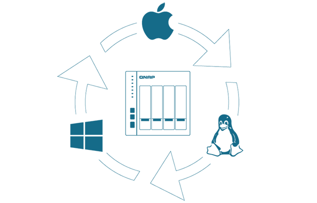 TS-832XU 支持 SMB/CIFS、NFS 及 AFP 通讯协议,让您跨 Windows、Mac、Linux/UNIX 网络分享档案。如此一来,资料可以集中储存,并受到 TS-832XU 各种档案保全及安全性功能的保护。Windows AD 和 LDAP 服务可让系统管理员使用既有的 Windows AD 服务器、LDAP 服务器或 NAS 内建的 LDAP 服务,设定用户权力。若要在手机和平板等多种装置间同步数据,只要在 NAS 上安装 Qsync Central,并在其他装置上安装 Qsync 客户端,即可享有快速、隐密、安全且实时的档案同步服务。