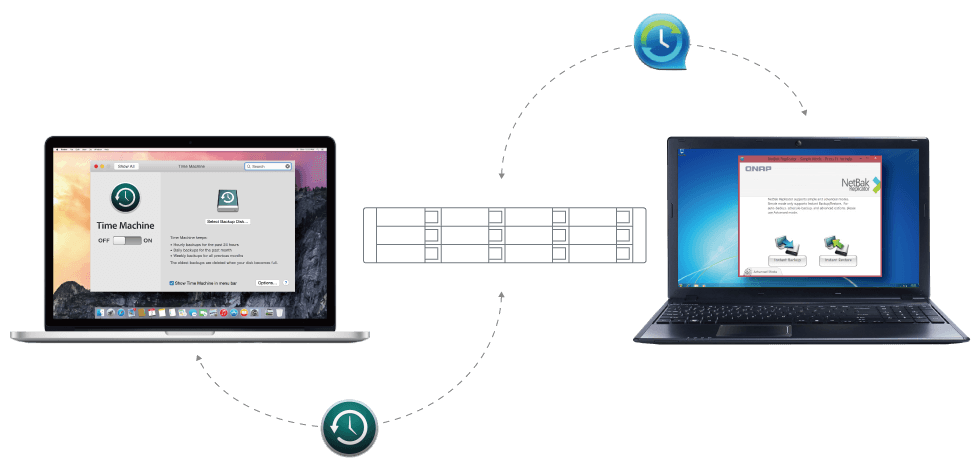 TS-832XU 可用于备份 Windows® PC 及 Mac 上的档案,只要使用 QNAP 提供的 NetBak Replicator 备份公用程序,只须轻松几步骤即可完成设定。macOS 使用者则可设定 Time Machine,将档案储存到 TS-832XU。若进一步整合运用快照及 Hybrid Backup Sync,TS-832XU 即可成为灾难复原计划的重要核心。